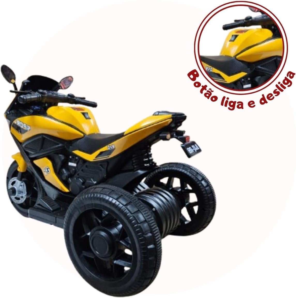 Super Mini Moto Elétrica Infantil 6v 03 Rodas com Som Música Rádio e Luz de Led (Amarelo)Super Mini Moto Elétrica Infantil 6v 03 Rodas com Som Música Rádio e Luz de Led (Amarelo)