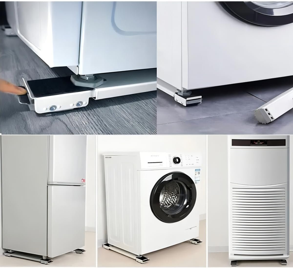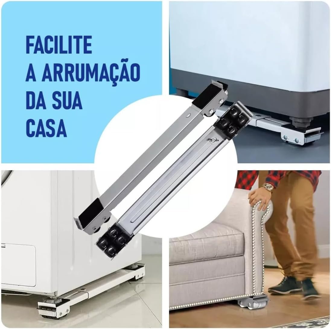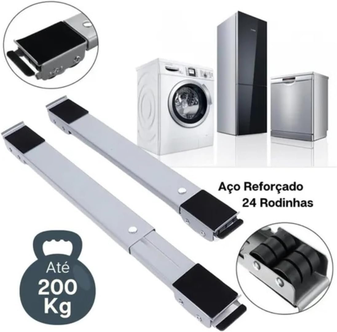 Suporte com Rodinhas Ajustável Telescópico para Geladeira, Máquina de Lavar e Fogão – Base Reforçada Antiderrapante até 200kg, Estrutura em Aço, Portátil, Silencioso, Deslizante e Durável. Transforme a movimentação de seus eletrodomésticos em uma tarefa simples e segura com o Suporte Ajustável Telescópico. Com design reforçado e capacidade de até 200kg, este suporte é a solução ideal para sua casa. Seu material em aço garante durabilidade, enquanto suas rodinhas silenciosas e antiderrapantes facilitam o deslocamento sem danificar o piso. Adquira já o seu e experimente toda a praticidade que este suporte pode oferecer!