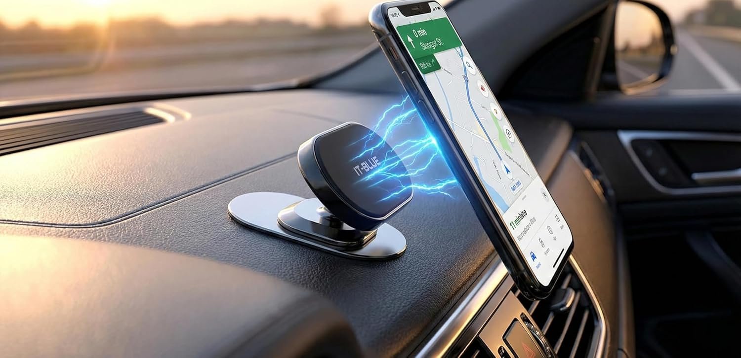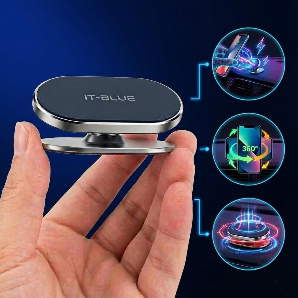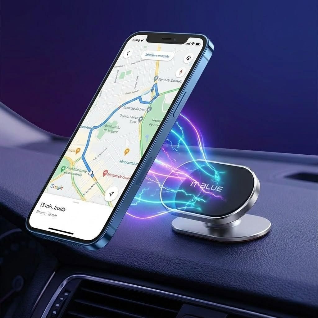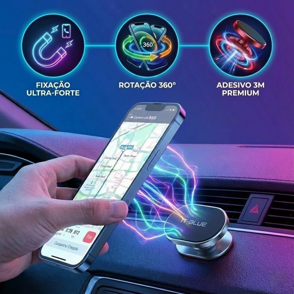 Suporte Magnético Celular Veicular 360° para Painel de Carro, Mini Base Adesiva 3M Forte, Imã Super Potente Universal para iPhone, Samsung, Xiaomi, Motorola e GPS – Design Discreto e Premium