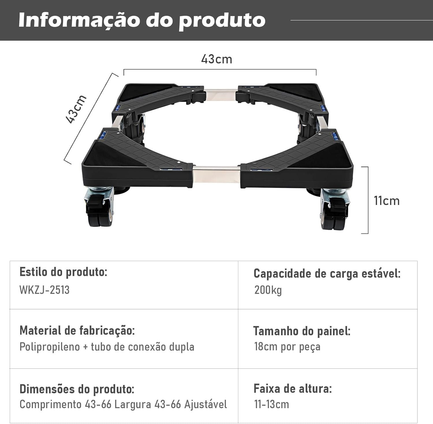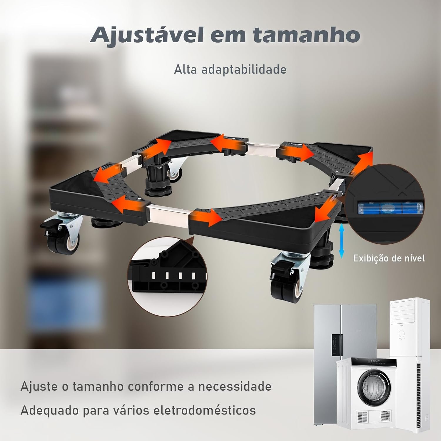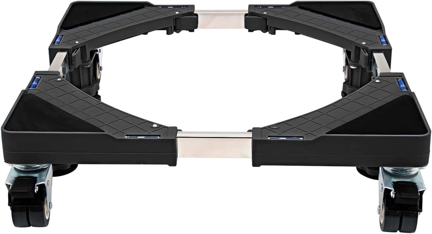 Suporte Móvel, Base Móvel com Roda Universal, Ajuste de Tamanho Livre, Adequado para Geladeira, Máquina de Lavar, Móveis e Eletrodomésticos Domésticos, Preto