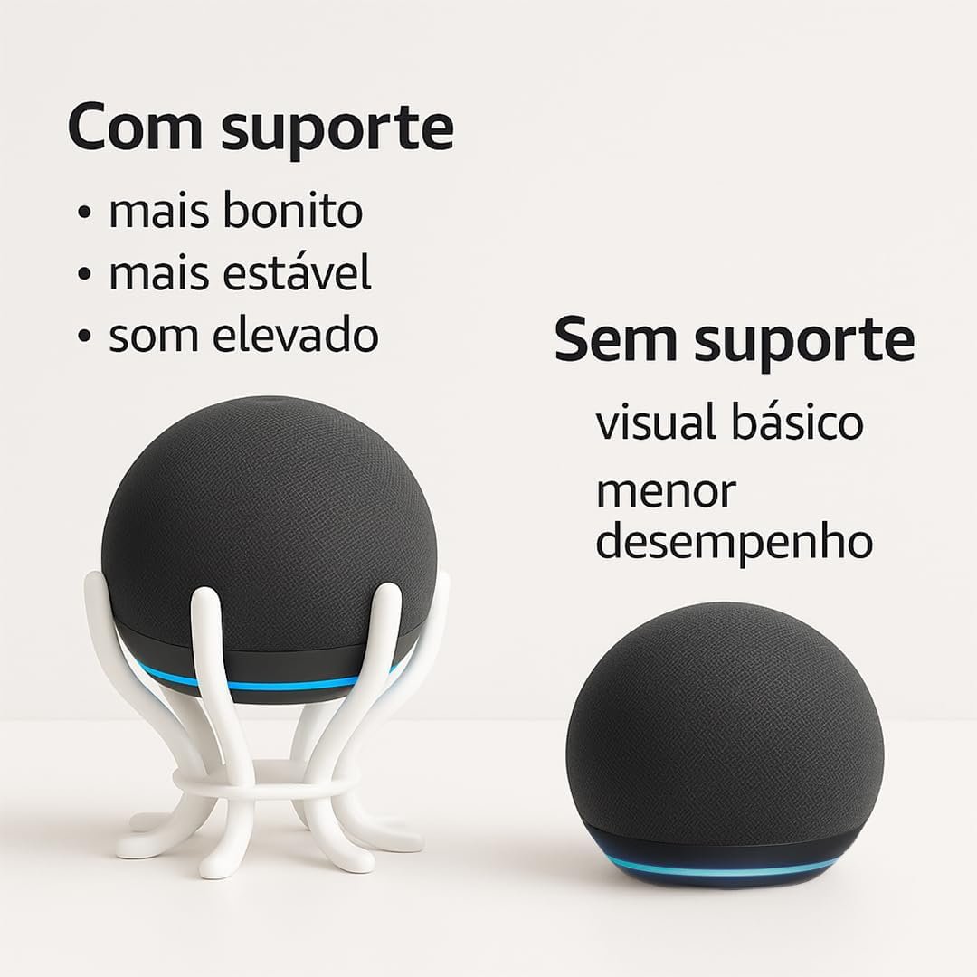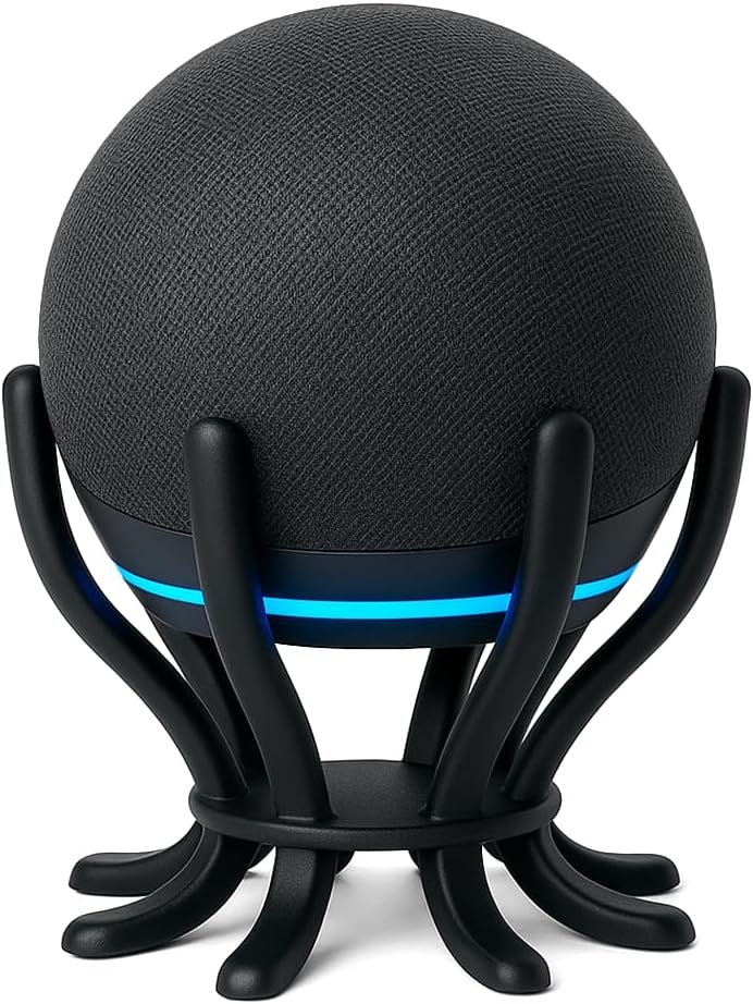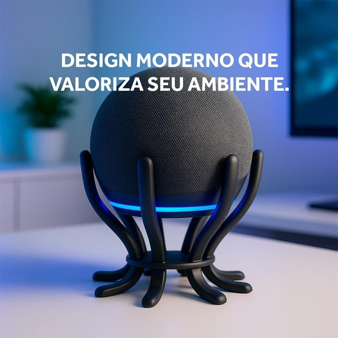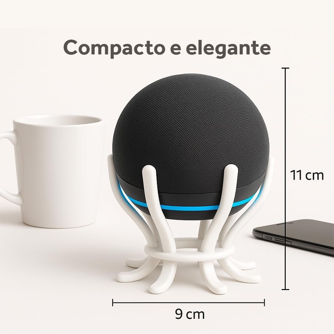 Suporte para Echo Dot 4ª e 5ª Geração, Base Polvo compátivel com Alexa 4 5 Geracao, Design Moderno e Estável, Organizador para Dot TimeClick (Preto Fosco)
