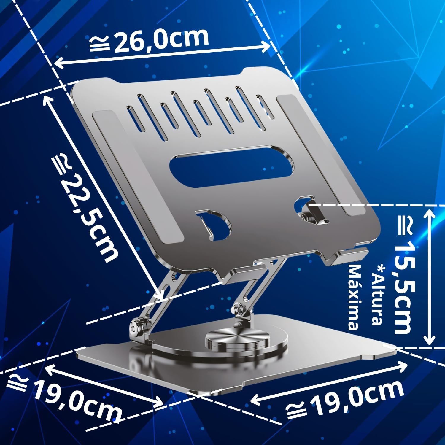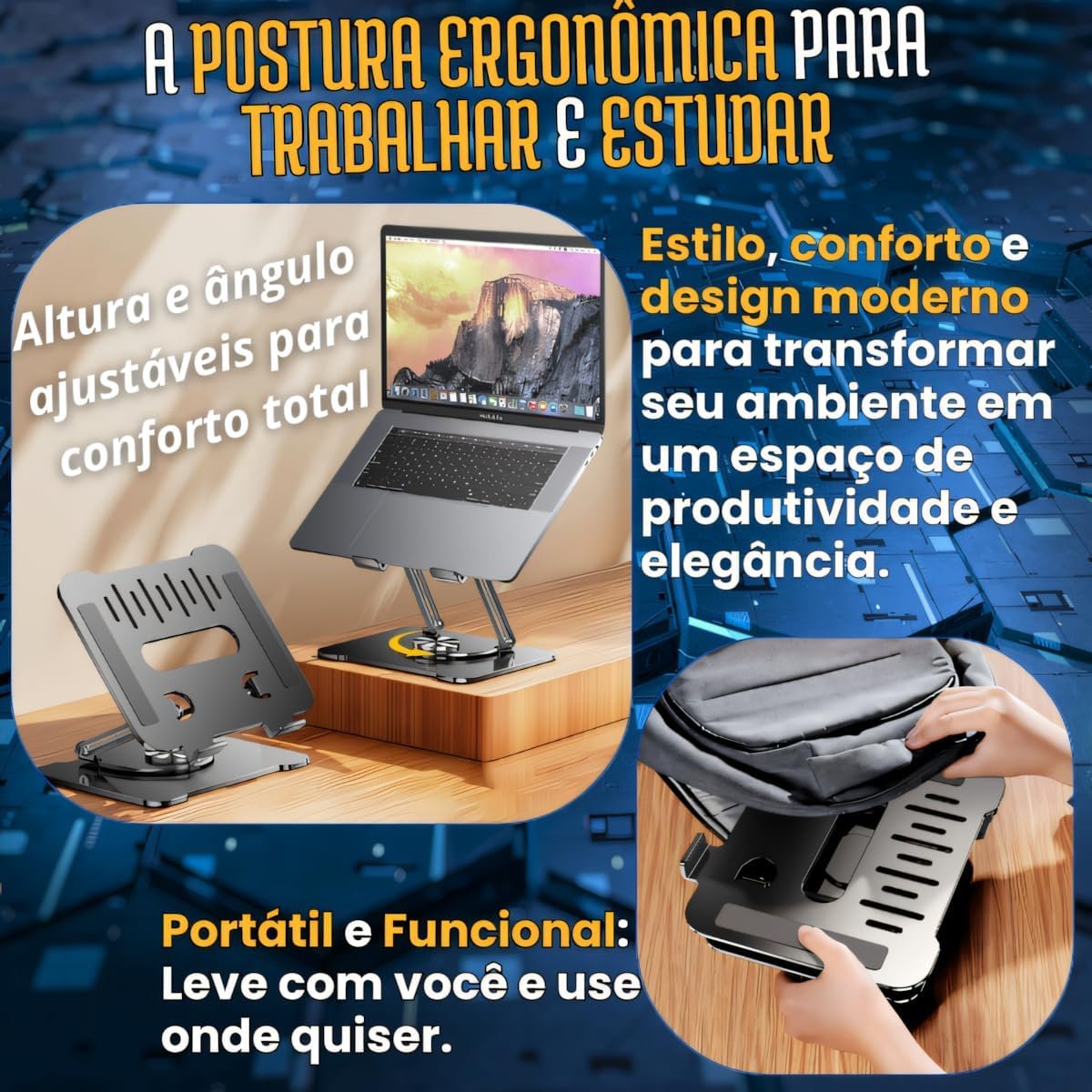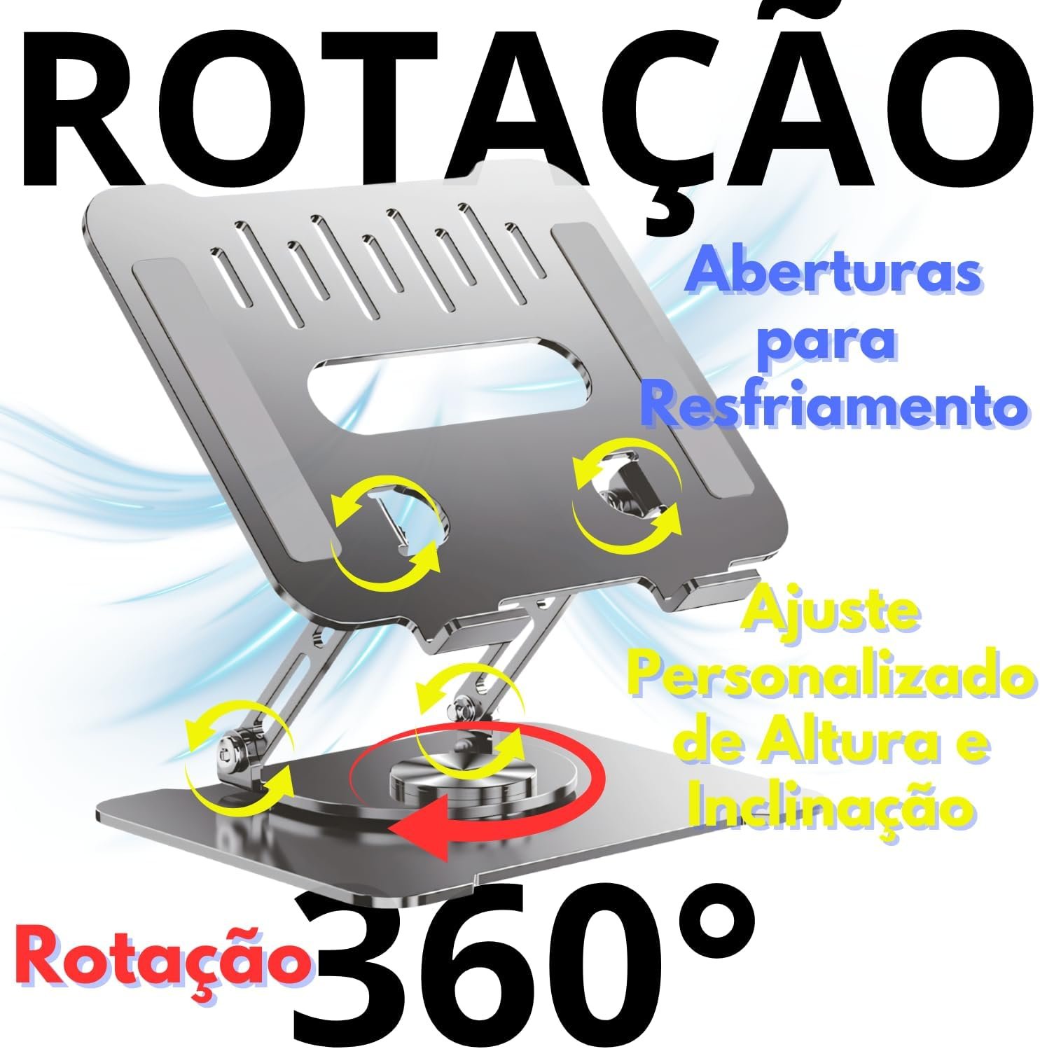 Suporte para Notebook Ajustável com Base Giratória 360° – Ergonômico, Dobrável, Portátil e Resistente. Ideal para Laptops de até 17”, MacBook, Dell, Lenovo e compatível com Tablet.