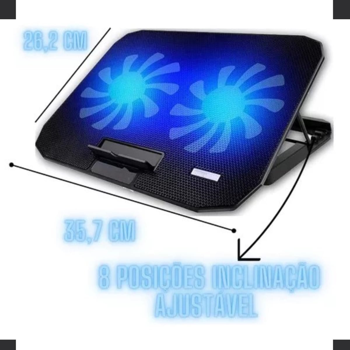 Suporte Para Notebook Com Cooler Duplo Silencioso Com 8 Níveis de Ajuste Ergonômico, Saída USB Adicional e Iluminação Interna Base Para Notebook de Até 17 Polegadas