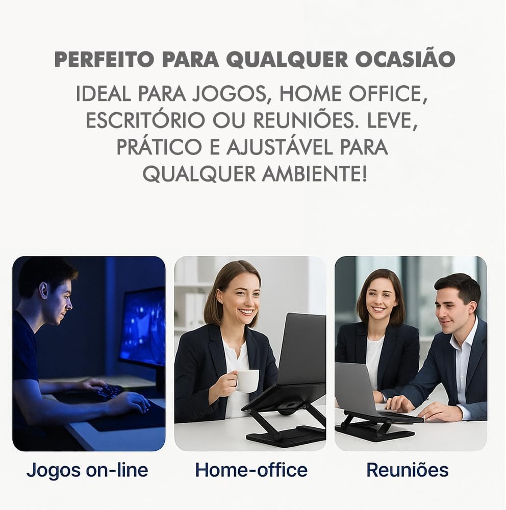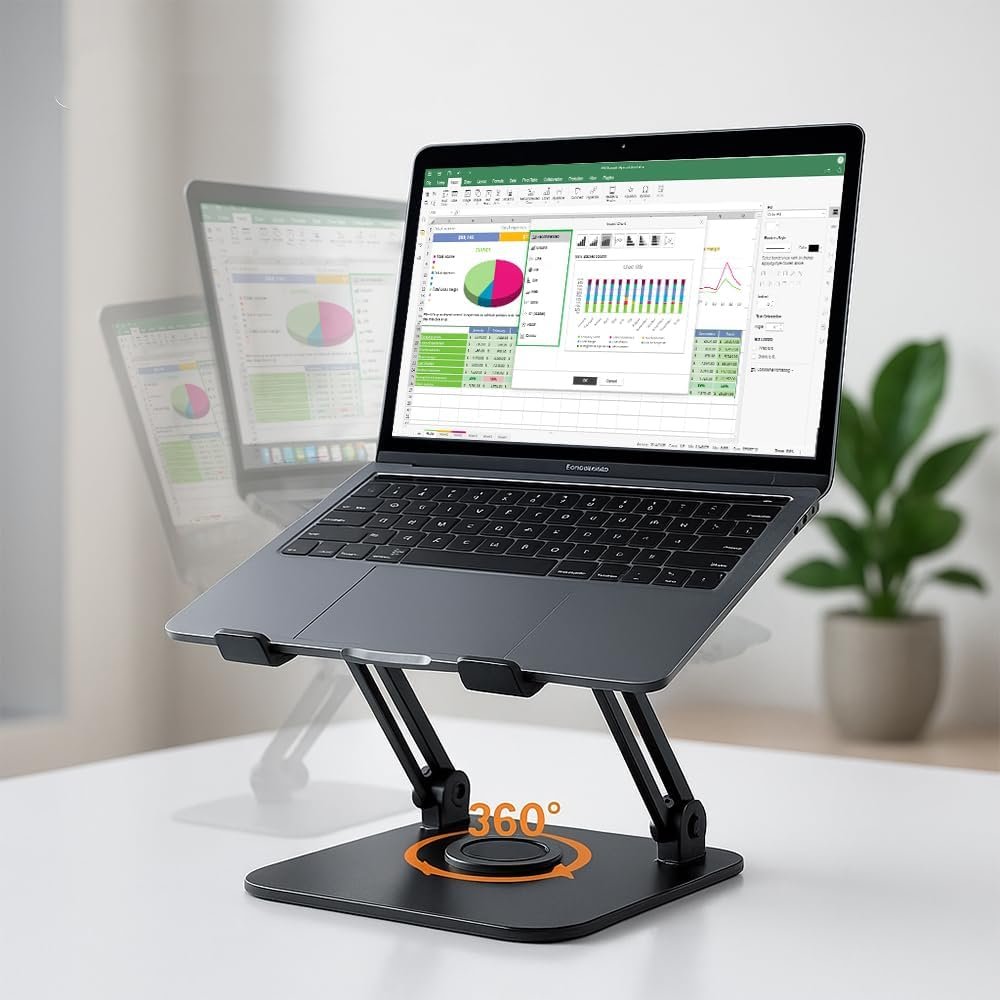 Suporte para Notebook de até 17” em Aço Carbono, Ajustável, Dobrável, Base Giratória 360° e Ventilação, Ergonômico e Portátil para Home Office e escritório, também para tablets e celulares (Branco)