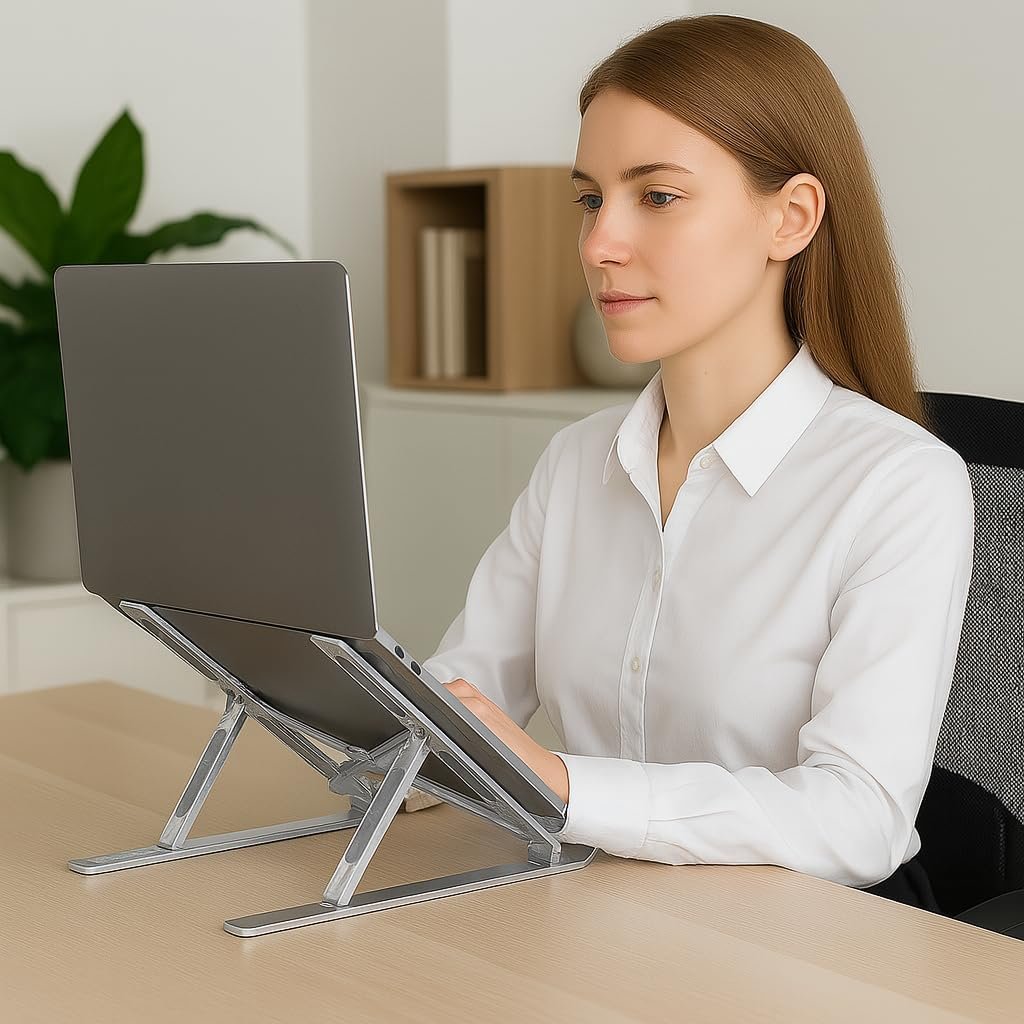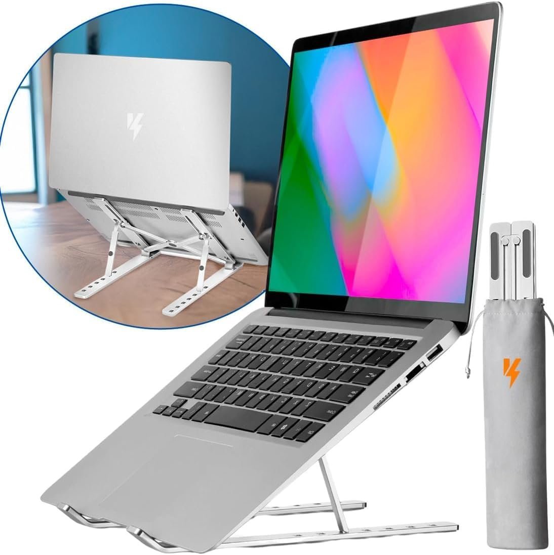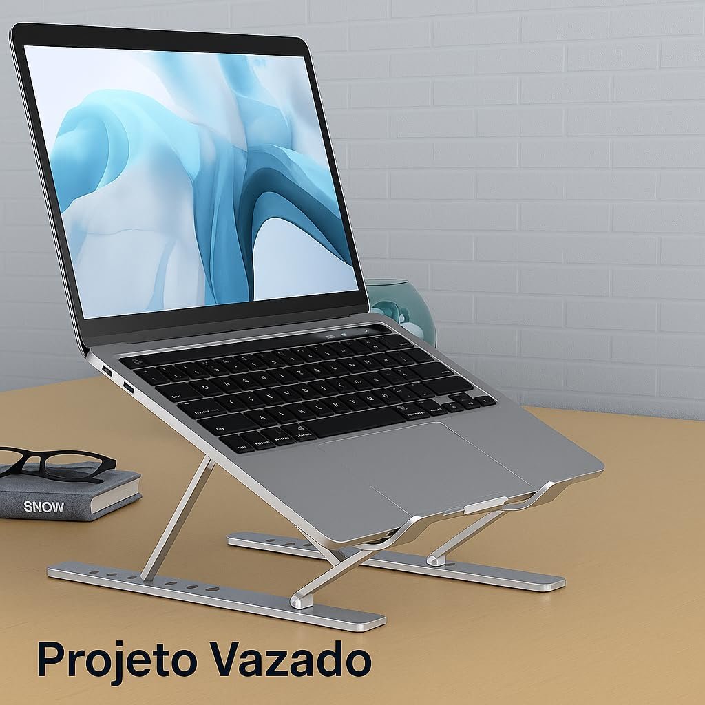 Suporte para Notebook e Tablet Linha Premium em Alumínio Dobrável e Ergonômico Para Desktop Portátil Ajustável em 6 Ângulos com Altura Regulável Leve Apoio Universal – Com estojo para armazenagem
