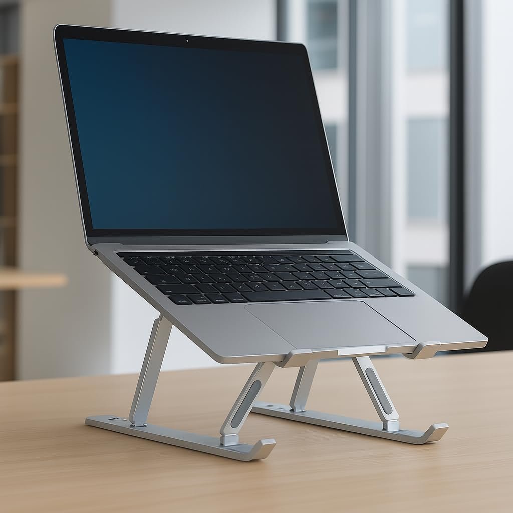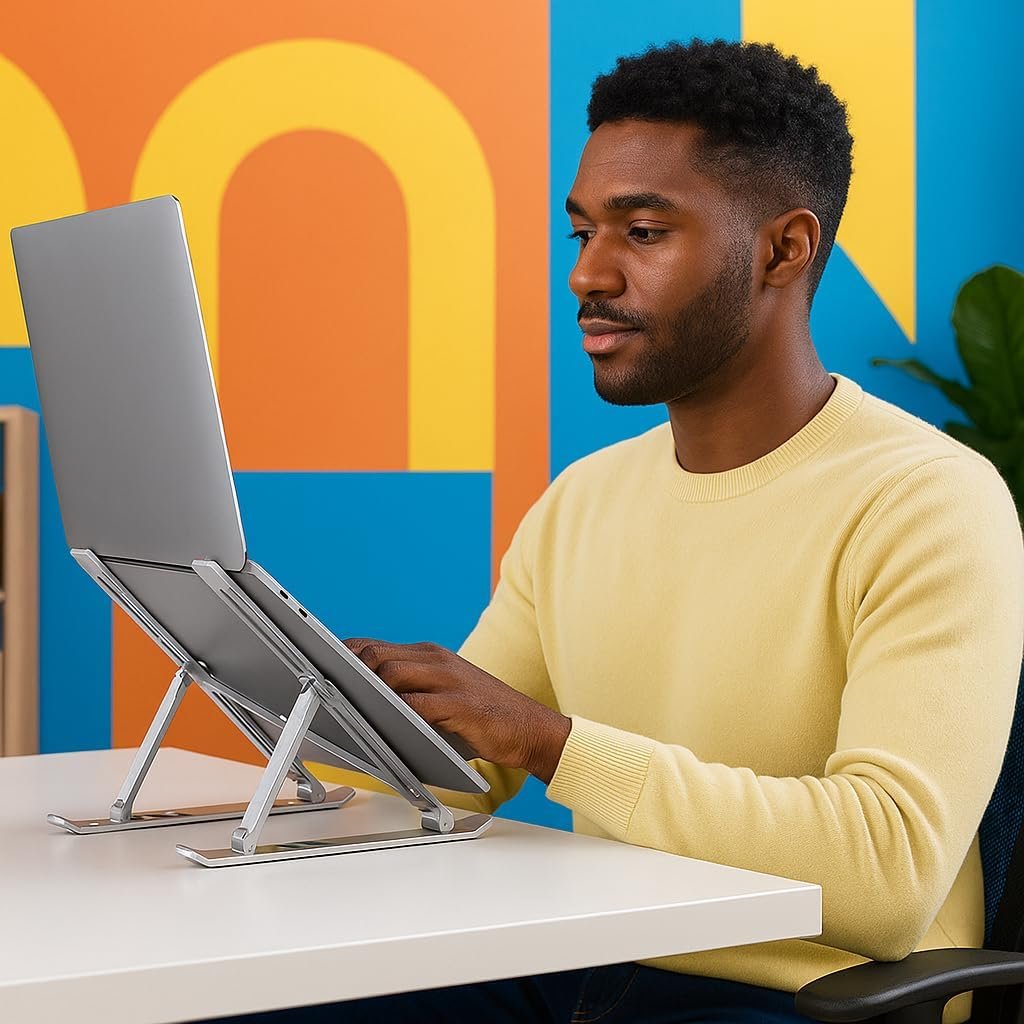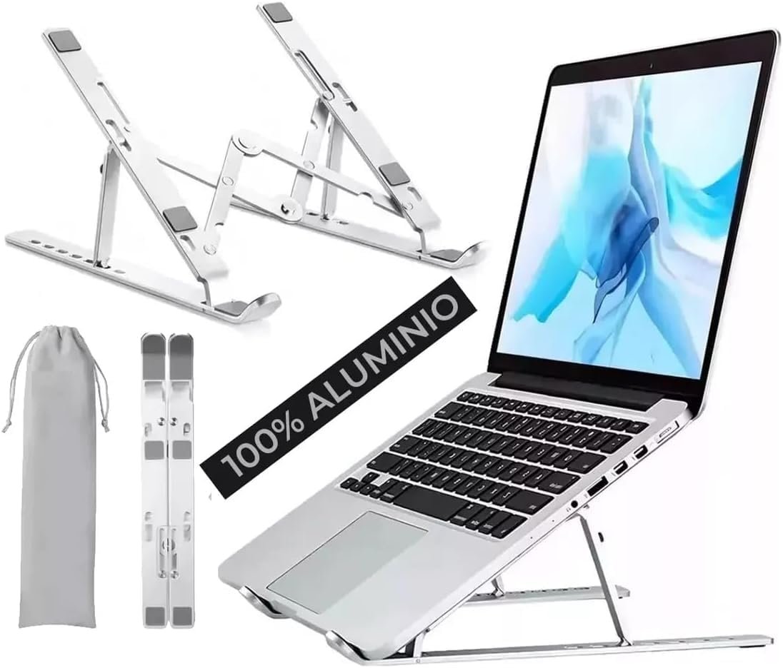 Suporte para Notebook e Tablet Linha Premium em Alumínio Dobrável e Ergonômico Para Desktop Portátil Ajustável em 6 Ângulos com Altura Regulável Leve Apoio Universal – Com estojo para armazenagem