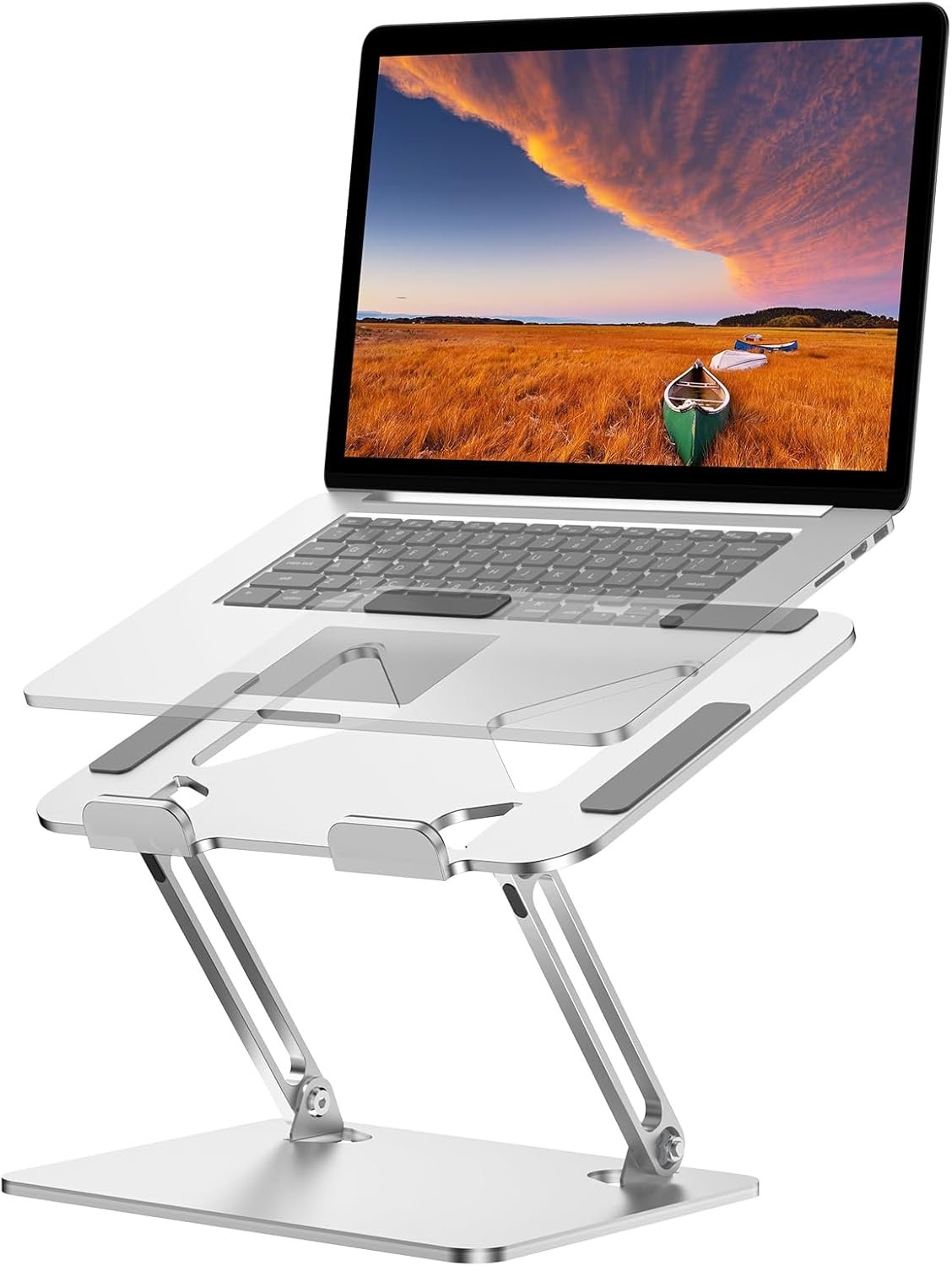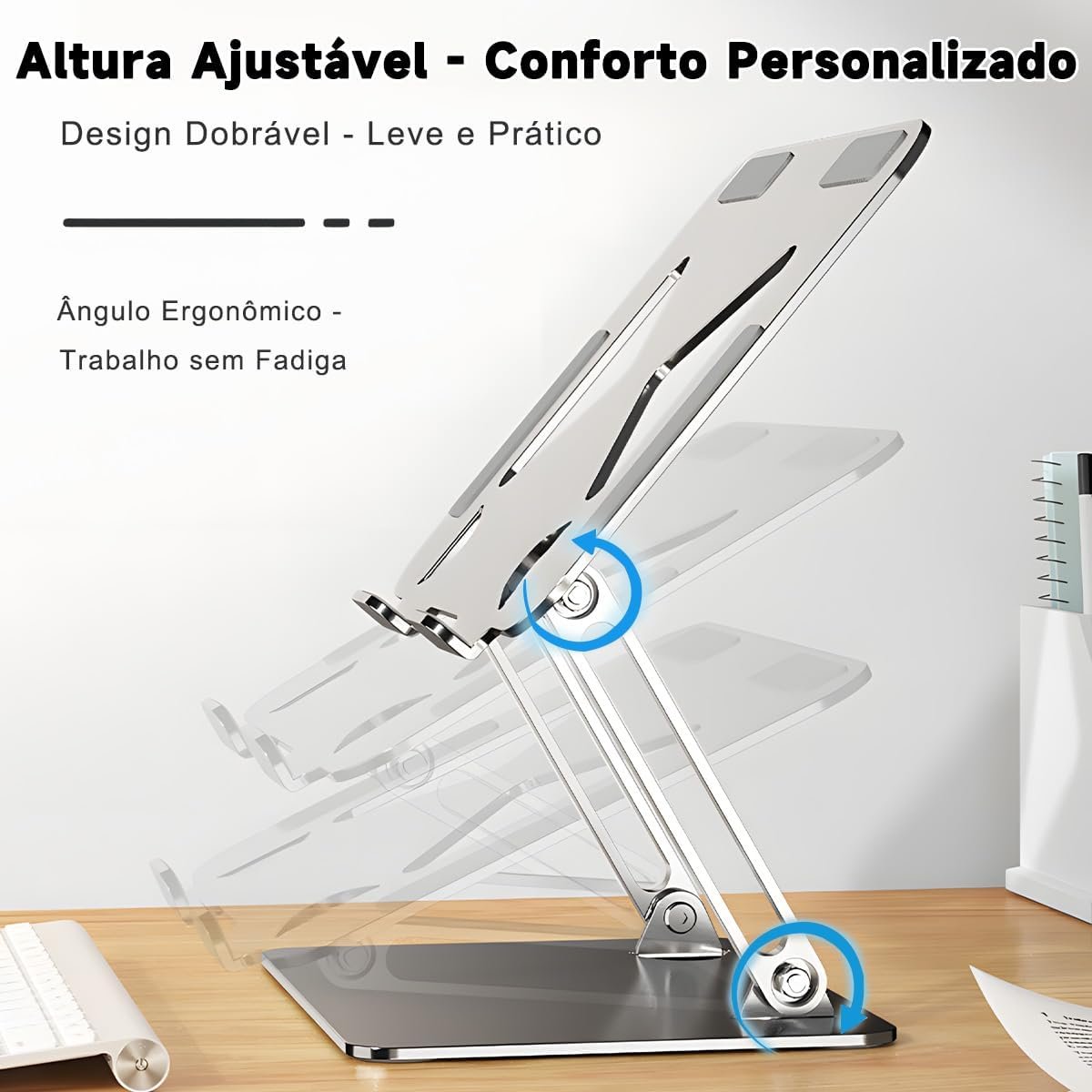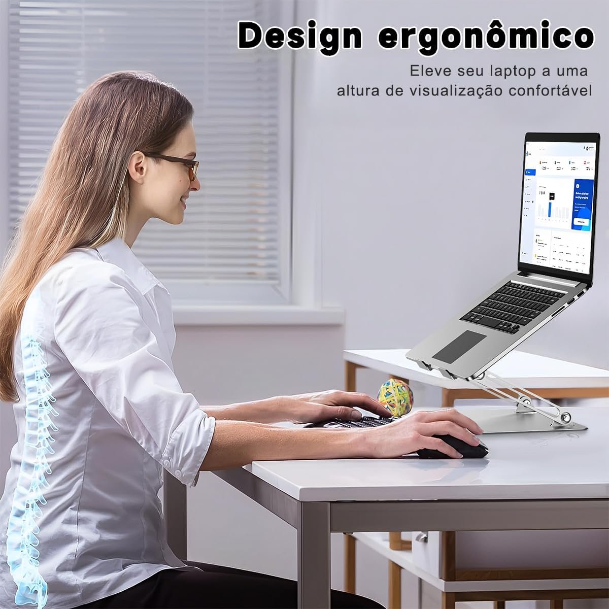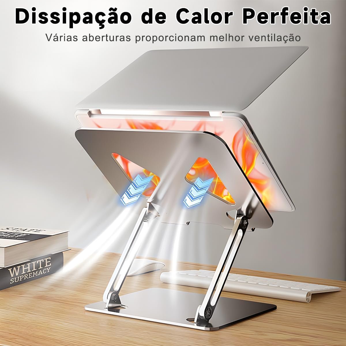 Suporte para Notebook em Aço Carbono – Apoio Ajustável e Ventilado para MacBook e Laptops até 17.3″ (10KG) – Apoiador de Notebook Ergonômico, Ideal para Home Office e Estudos (Prata)