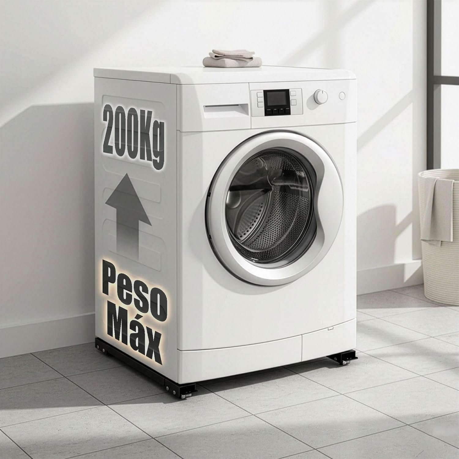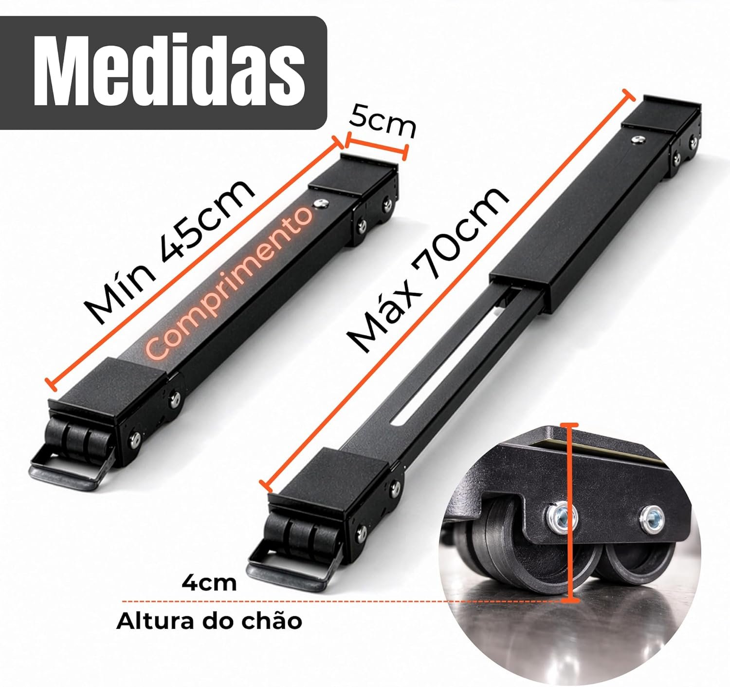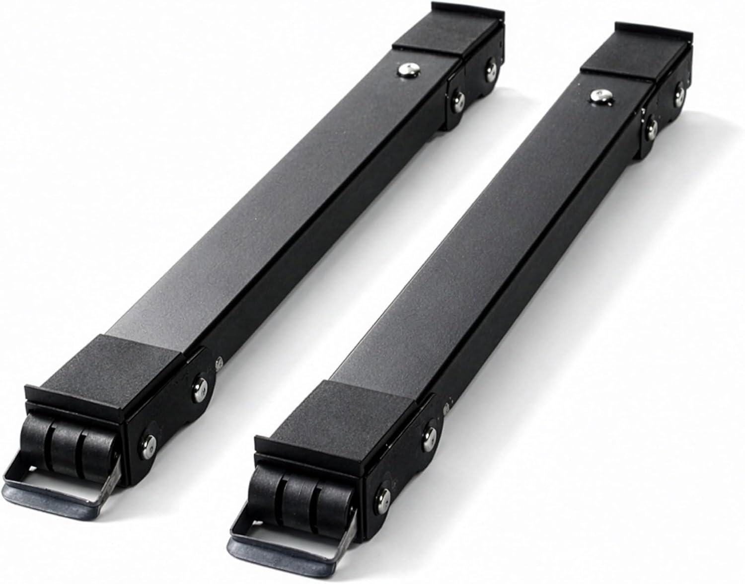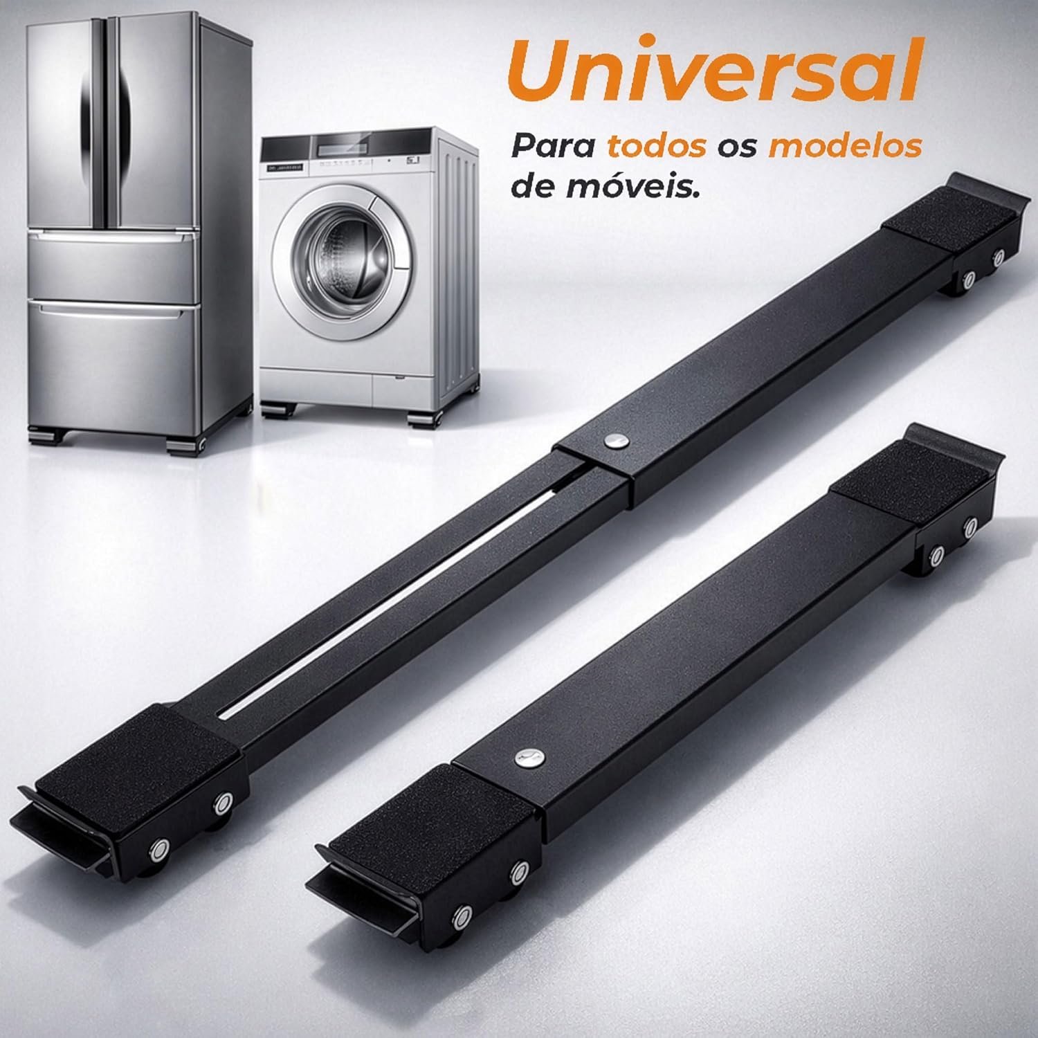 Suporte Universal Ajustável com Rodinhas e Trava Dupla para Geladeira, Fogão e Máquina de Lavar – Base Elevatória em Aço com Rodízios Reforçados e Pés Antivibração – Kit 2 Barras Preto