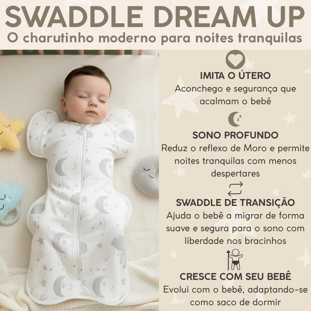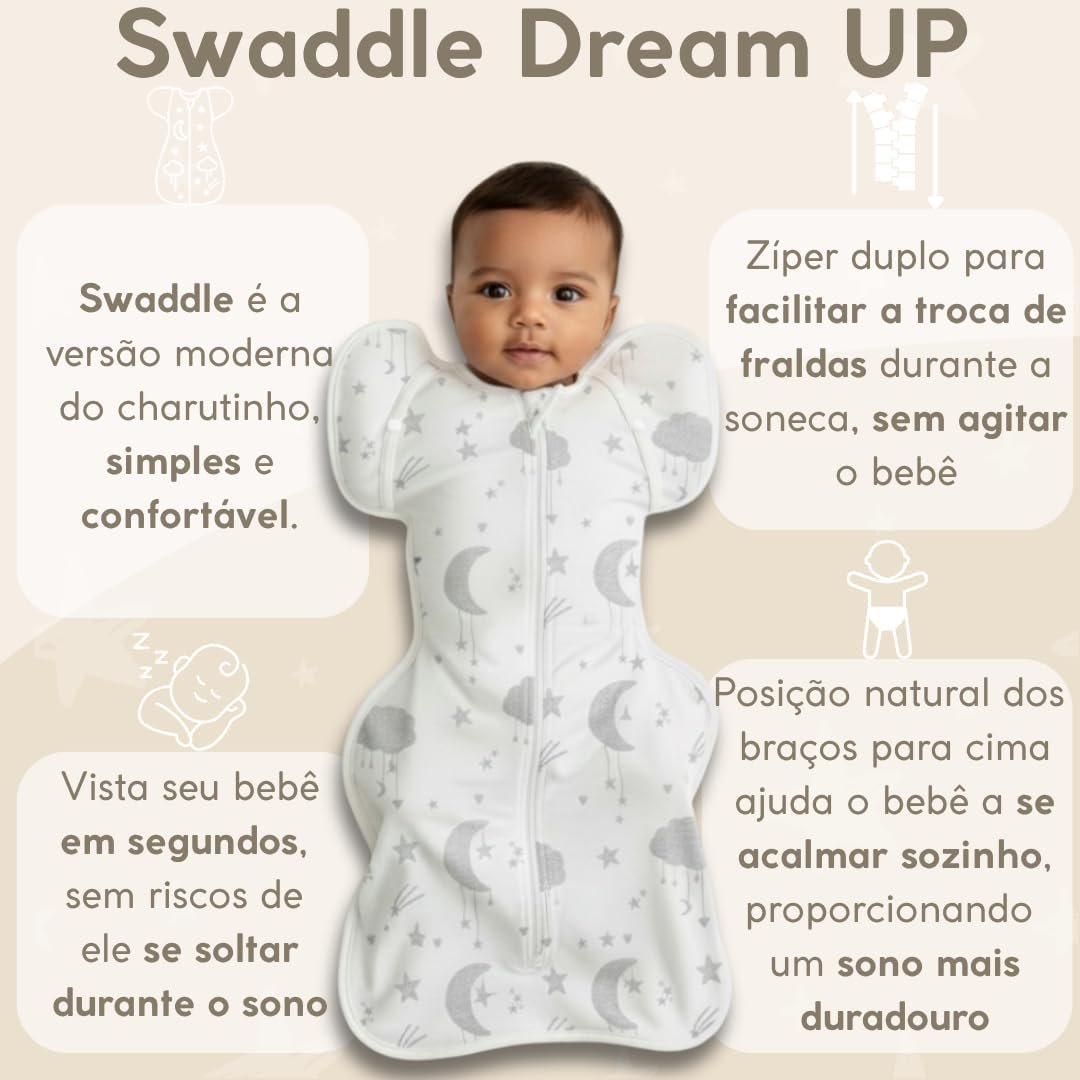 Swaddle Dream Up – Charutinho, Saco de Dormir Ajustável e Cueiro, Swaddle de Transição, Melhora o Sono e Acalma o Reflexo do Susto – Essencial para Recém-nascidos – Cor Azul – Tamanho PSwaddle Dream Up – Charutinho, Saco de Dormir Ajustável e Cueiro, Swaddle de Transição, Melhora o Sono e Acalma o Reflexo do Susto – Essencial para Recém-nascidos – Cor Azul – Tamanho P