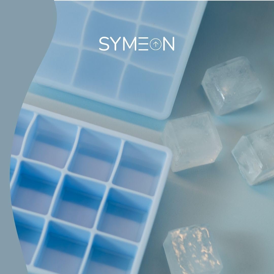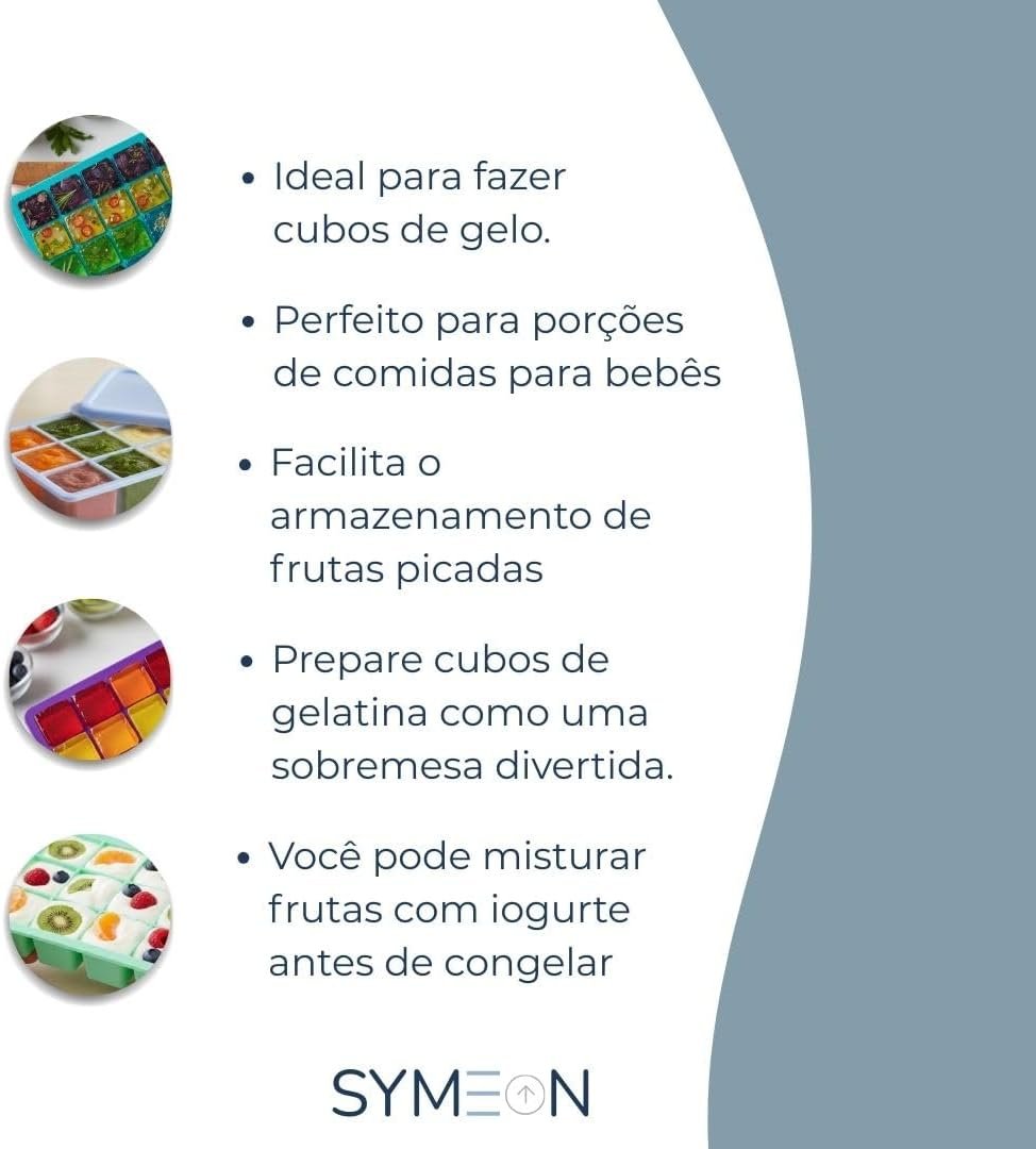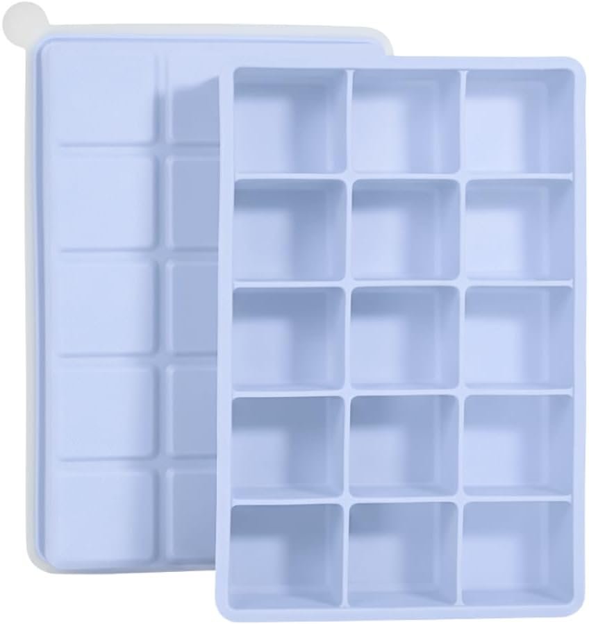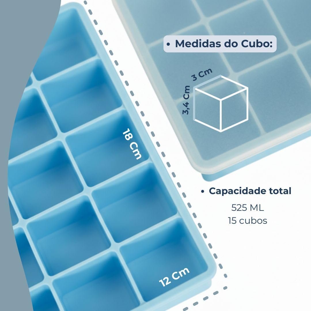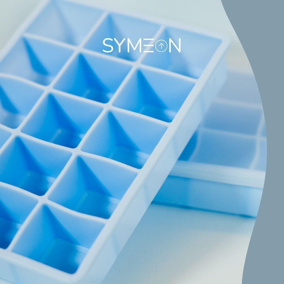 SYMEON Forma de Gelo Silicone Com Tampa Livre de BPA Flexivel 15 Cubos de 27ml Cada Prática Resistente e Reutilizável Forma Para Papinha Gelatina Frutas (FORMAGELO-AZUL)