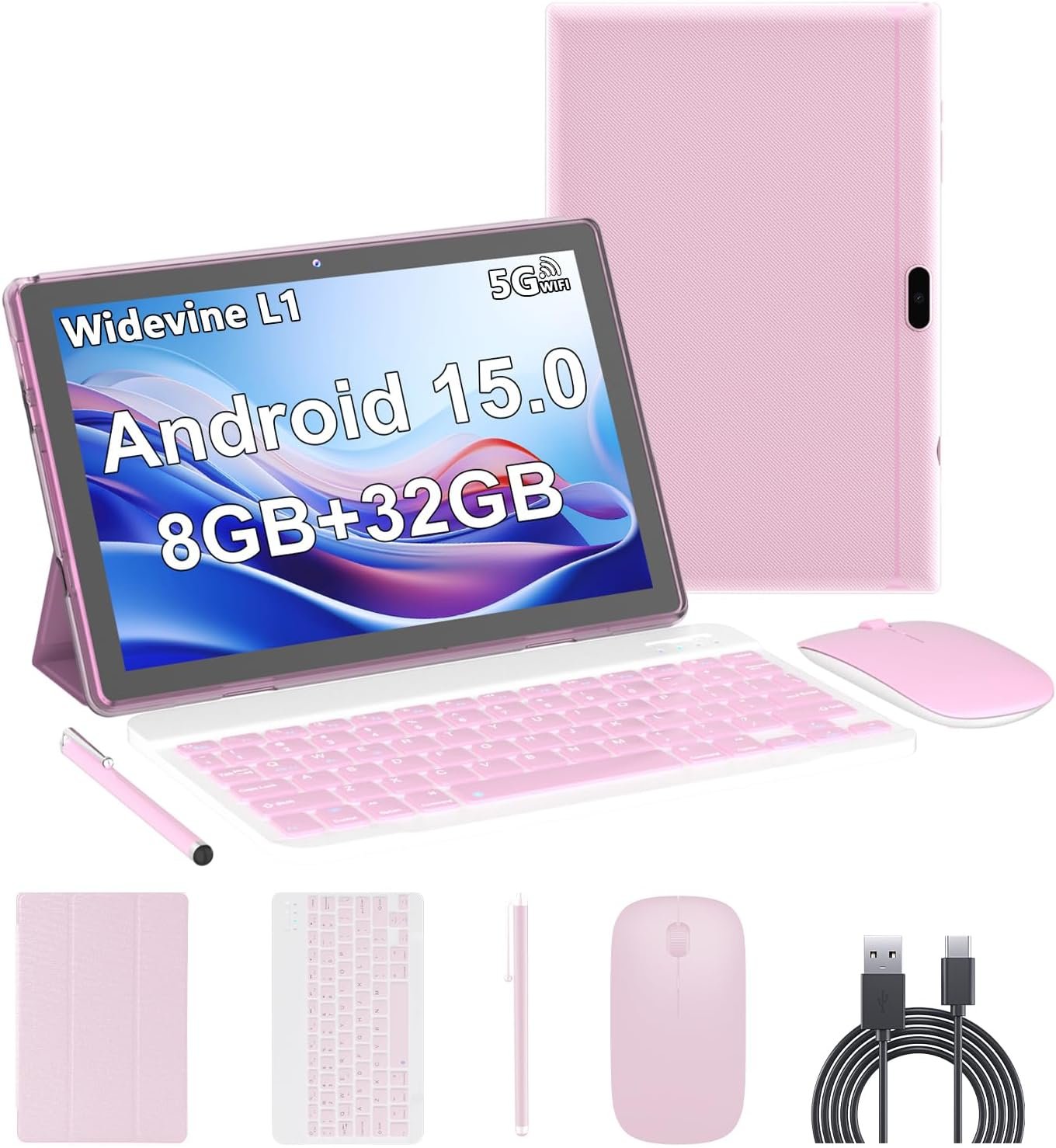 Tablet Android 15, tablets de 10 polegadas, 8 GB de RAM + 32 GB de ROM/2 TB expansível, tablets 2 em 1 com capa para teclado, tela IPS 1280 x 800, 5G Wi-Fi6, câmera dupla, bateria de 6000 mAh BT5