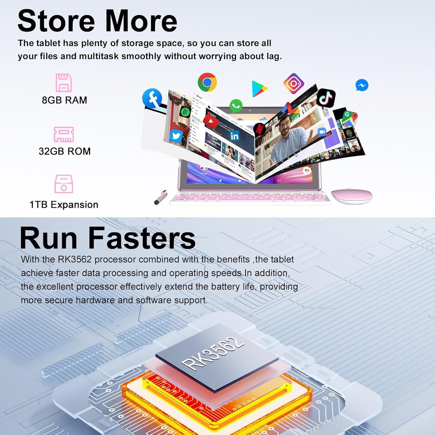 Seja o primeiro a avaliar “Tablet Android 15, tablets de 10 polegadas, 8 GB de RAM + 32 GB de ROM/2 TB expansível, tablets 2 em 1 com capa para teclado, tela IPS 1280 x 800, 5G Wi-Fi6, câmera dupla, bateria de 6000 mAh BT5”