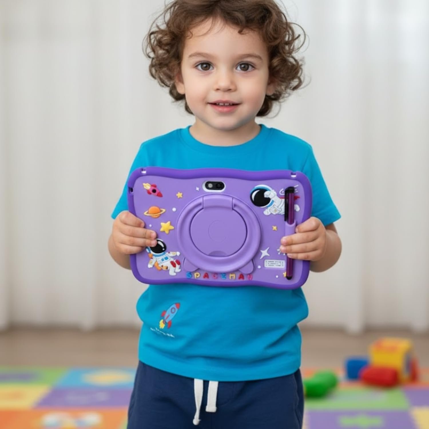 Tablet Infantil Kids Tela 7″ 8GB RAM, 128GB, Android Octa-core, Wifi 2.4G/5G, Bateria 4000mAh, Câmeras 5MP/8MP com Capa Anti-queda, Alça e Caneta Touch, para Jogos, Entretenimento, Diversão (Roxo)