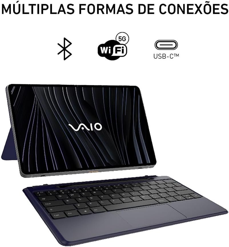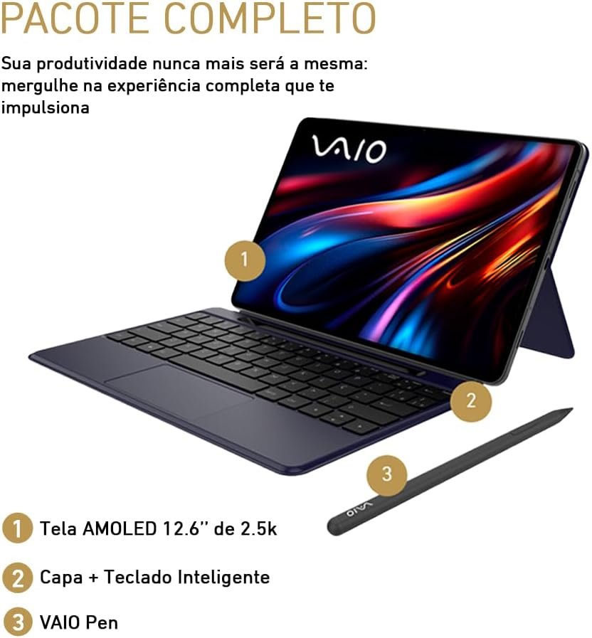 Tablet VAIO TL12 8GB 256GB Octa-Core, Tela AMOLED 12.6” 2.5K, com Teclado de Conexão Inteligente e Caneta Ativa, 5G WiFi, Câmera 13MP + Selfie 12MP, 10.090mAh, Android 15 – Preto