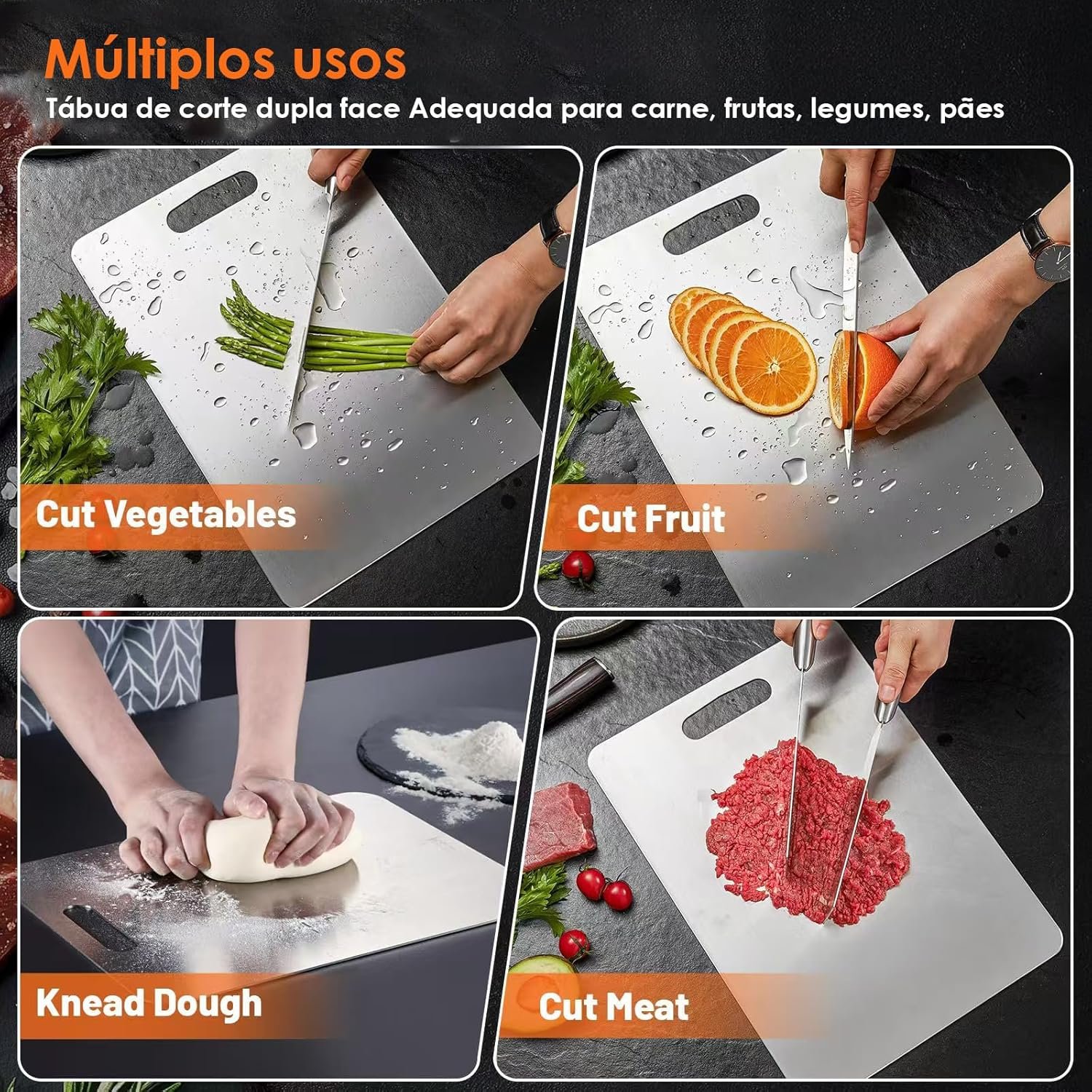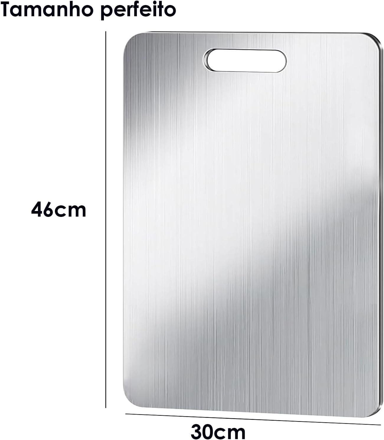 Tábua de Corte de Titânio Inoxidável 46x30cm – Antibacteriana, Resistente e Durável para Cozinha, Carne, Legumes – 1 Peça