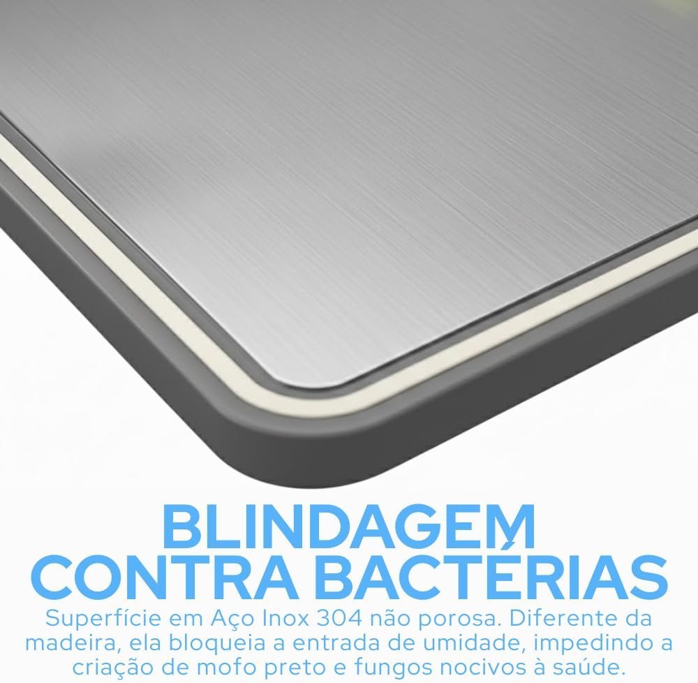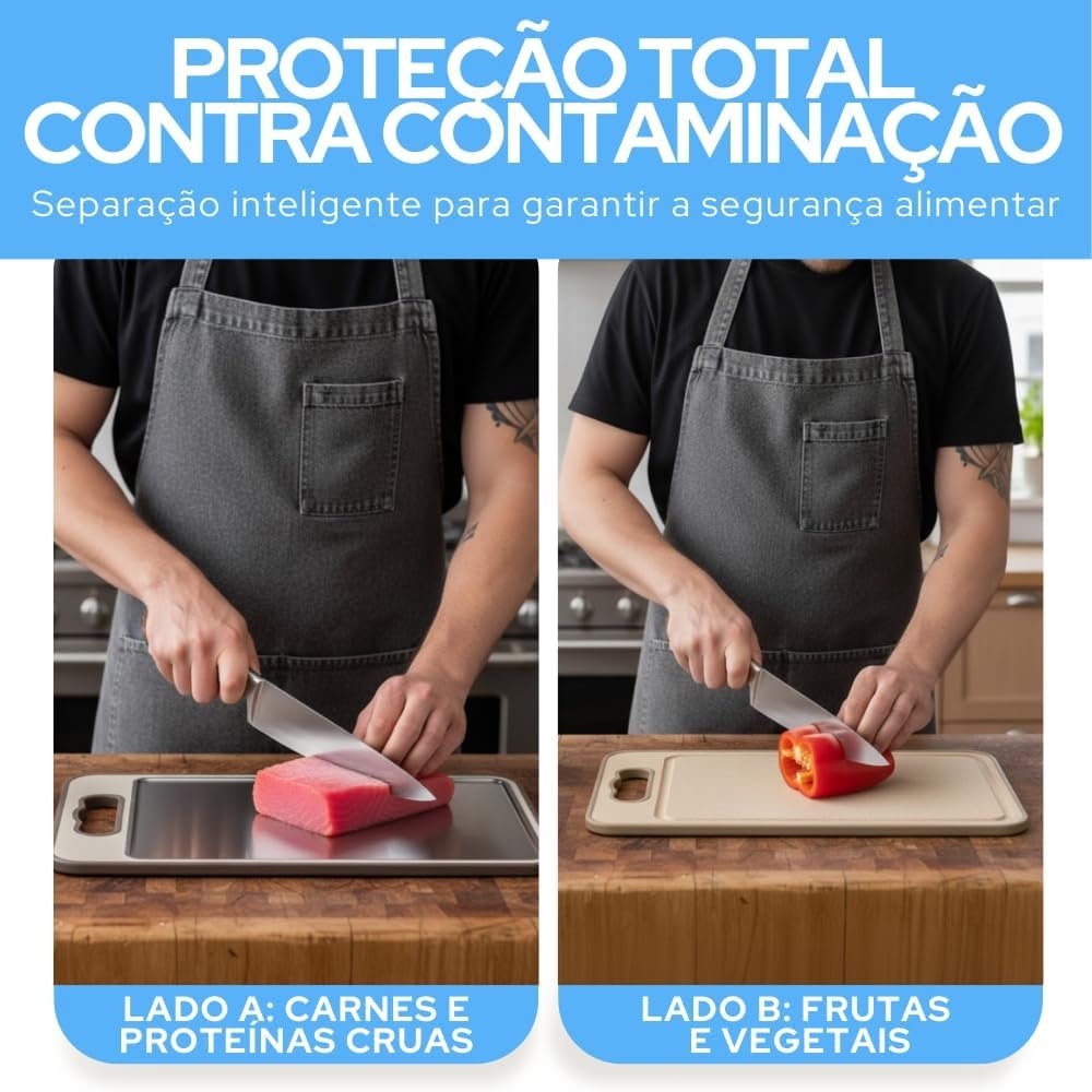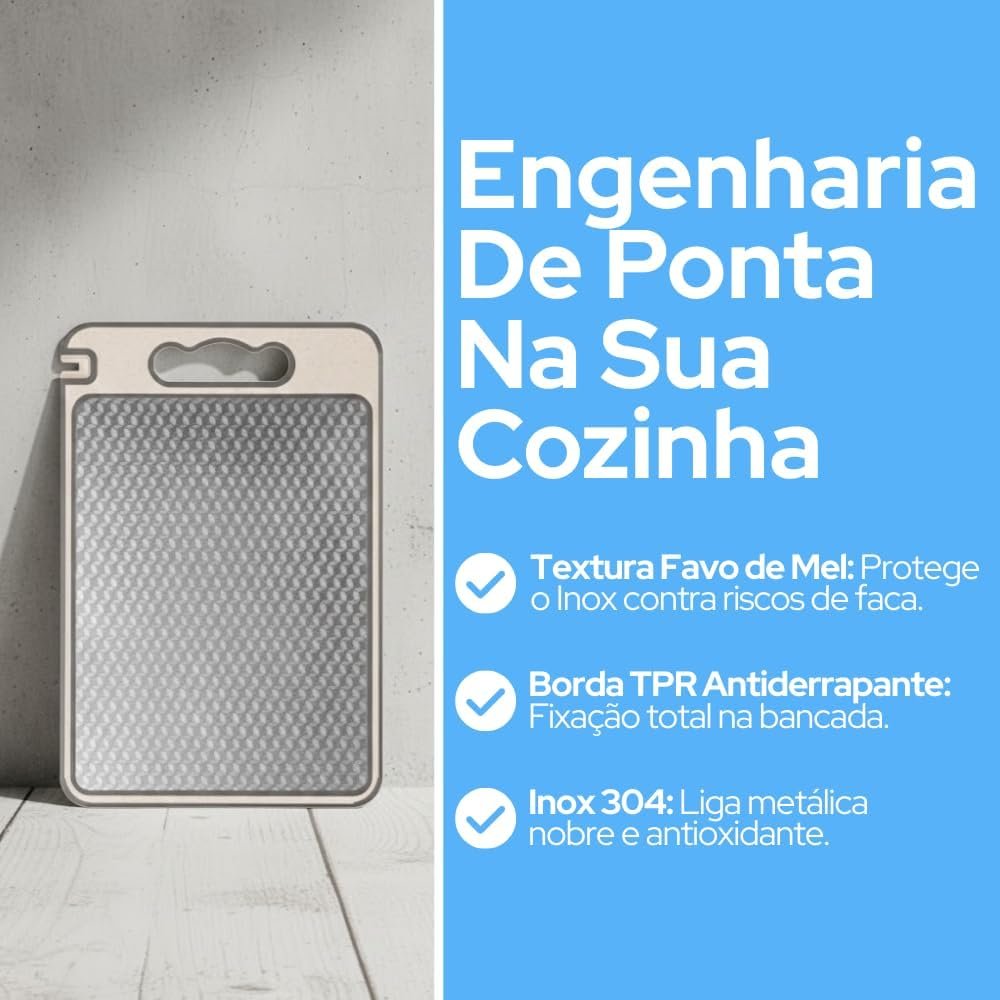 Tábua de Corte Dupla Face Inox 304 e Palha de Trigo – Antibacteriana, Higiênica, Ecológica, Antiodor e Fácil Limpeza para Carnes, Legumes e Cozinha Profissional