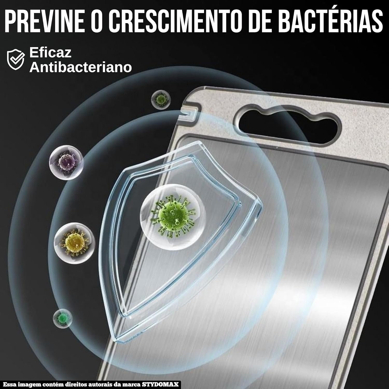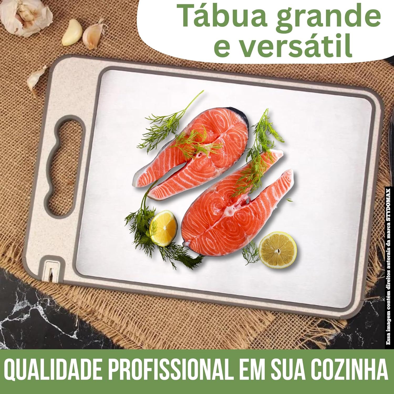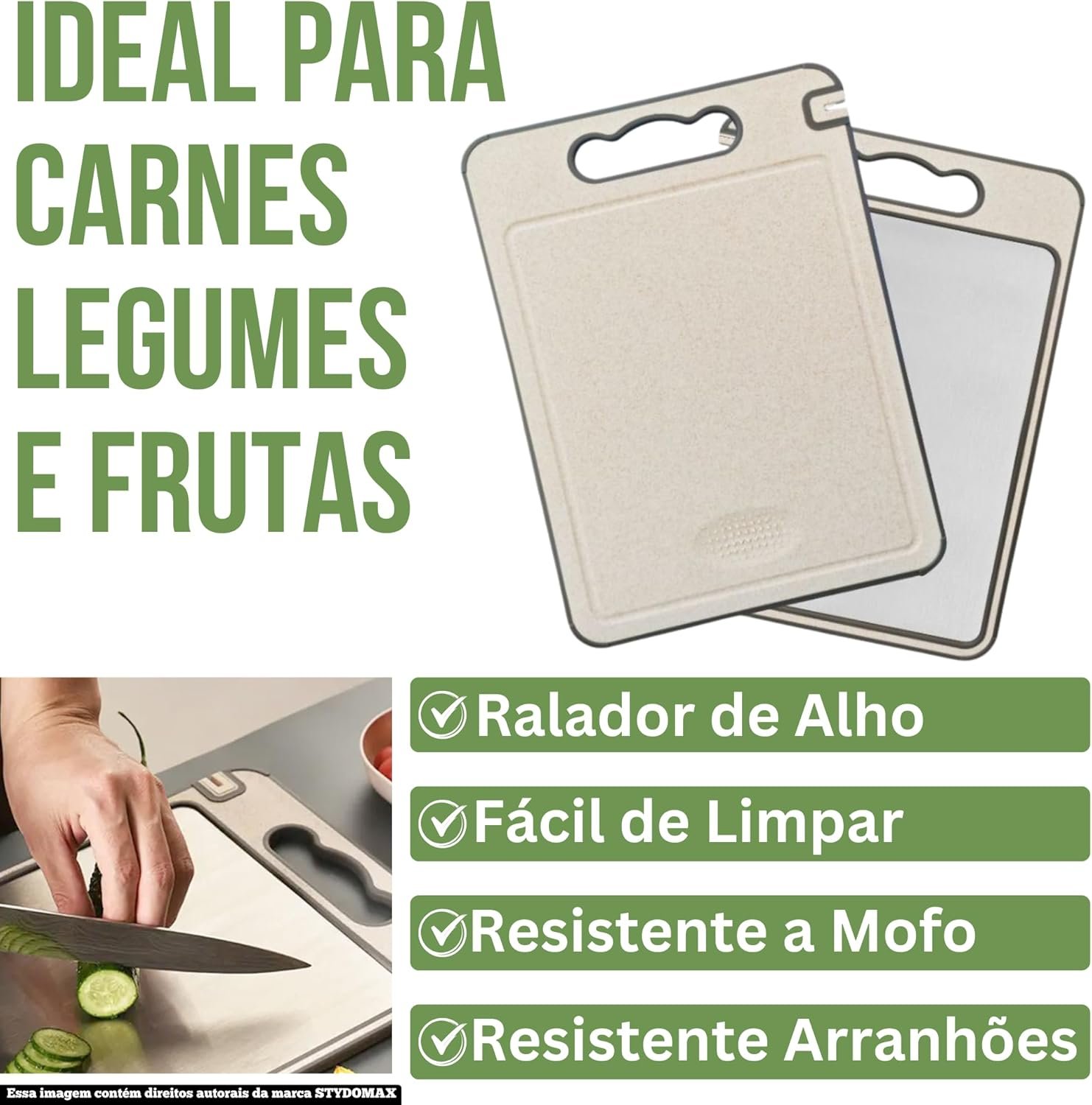 Tábua de Corte Inox Cozinha Dupla Face Aço Inoxidável e PP, Superfície Higiênica para Carnes, Frutas e Vegetais, Afiador Integrado Base Antiderrapante e Alça Ergonômica Premium
