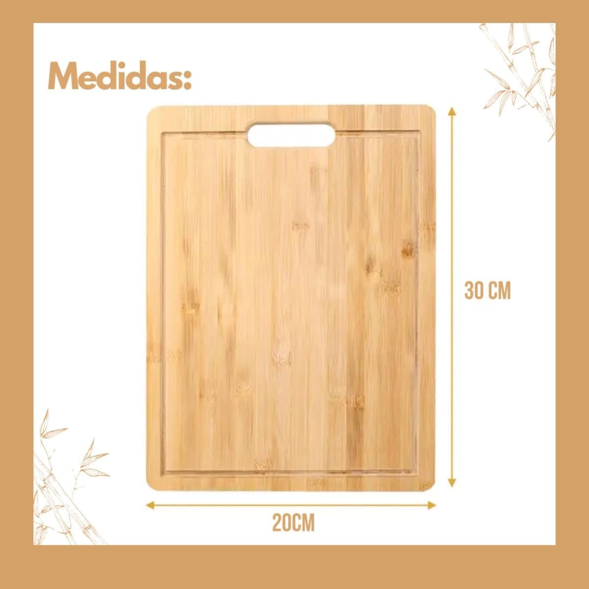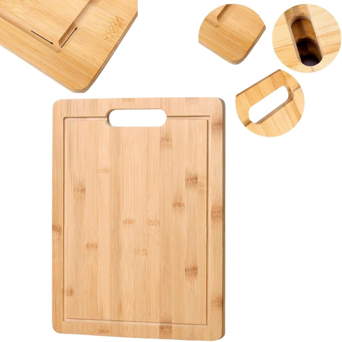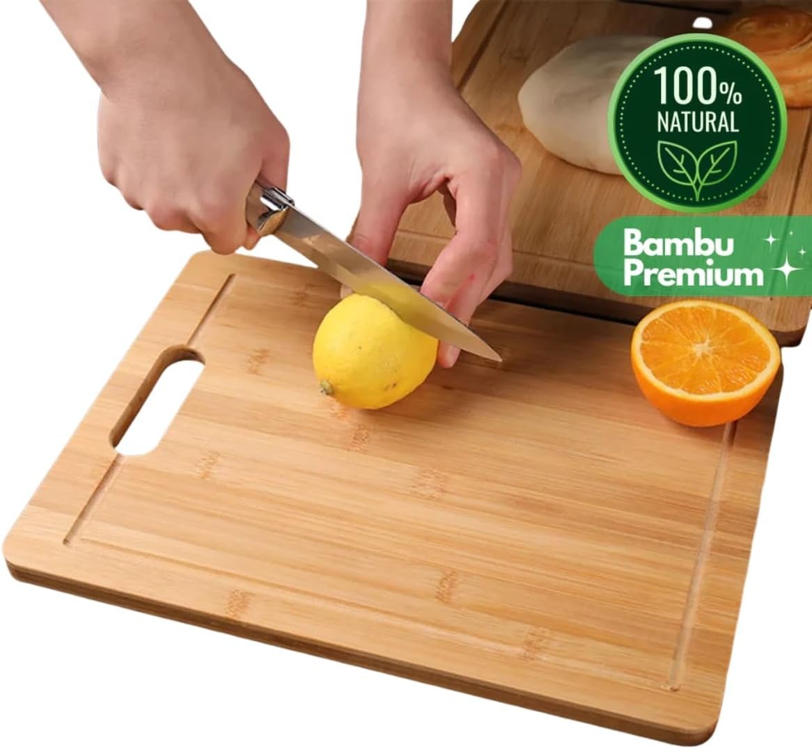 Tábua de Corte Premium em Bambu Natural, 30×20 cm, com Alça para Pendurar, Bandeja de Servir – Cozinha e Organização