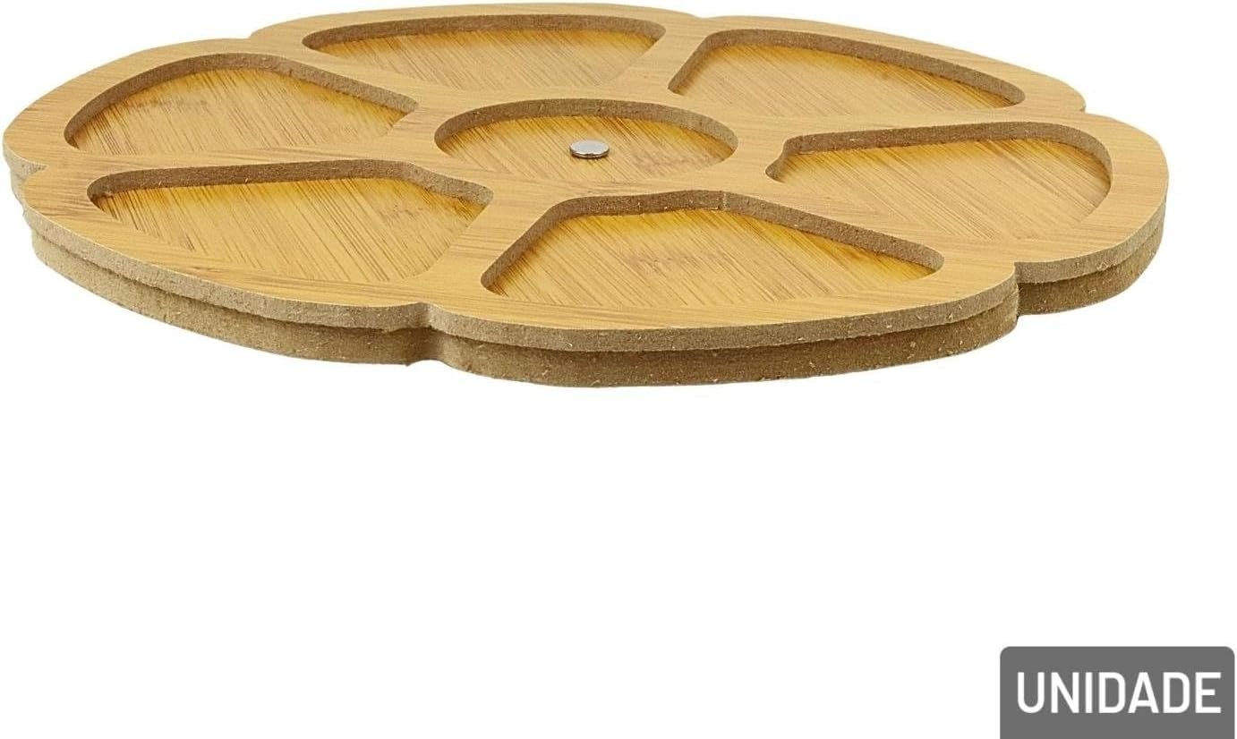 Tábua Para Petisco Redonda 26 cm De Madeira Com Divisórias Bandeja Frios Petisqueira