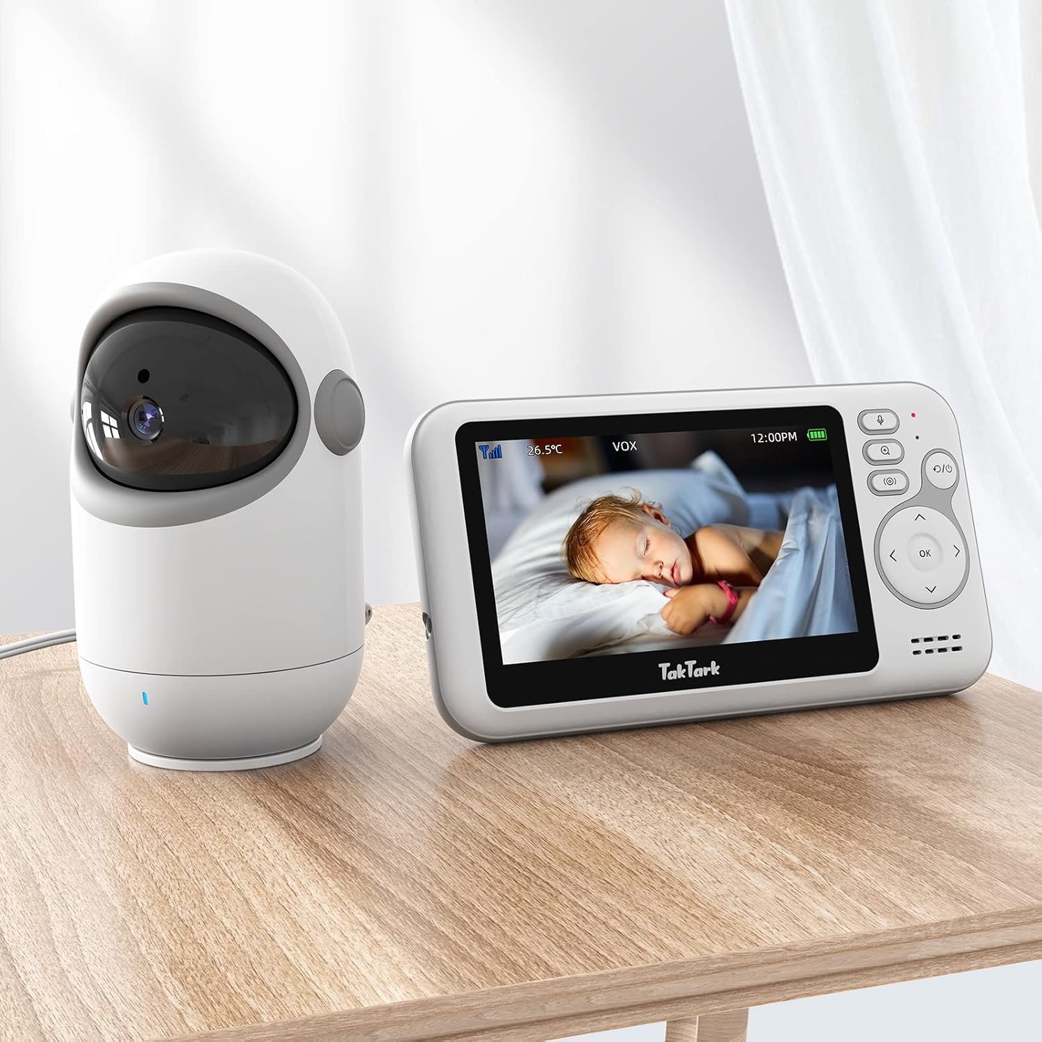 TakTark Babá Eletrônica Câmera – Monitores de Câmara de Vídeo 4.3″ com Pan & Tilt, Áudio Bidirecional, Visão Noturna, Zoom Digital, Decoração Sonora VOX – Perfeito para Novos Pais!