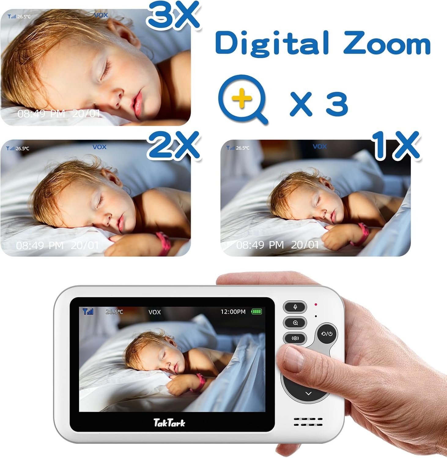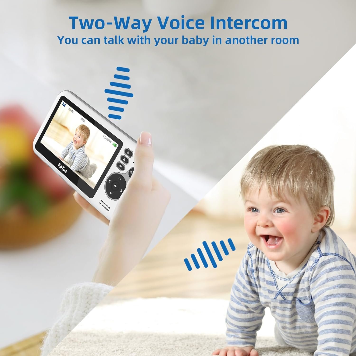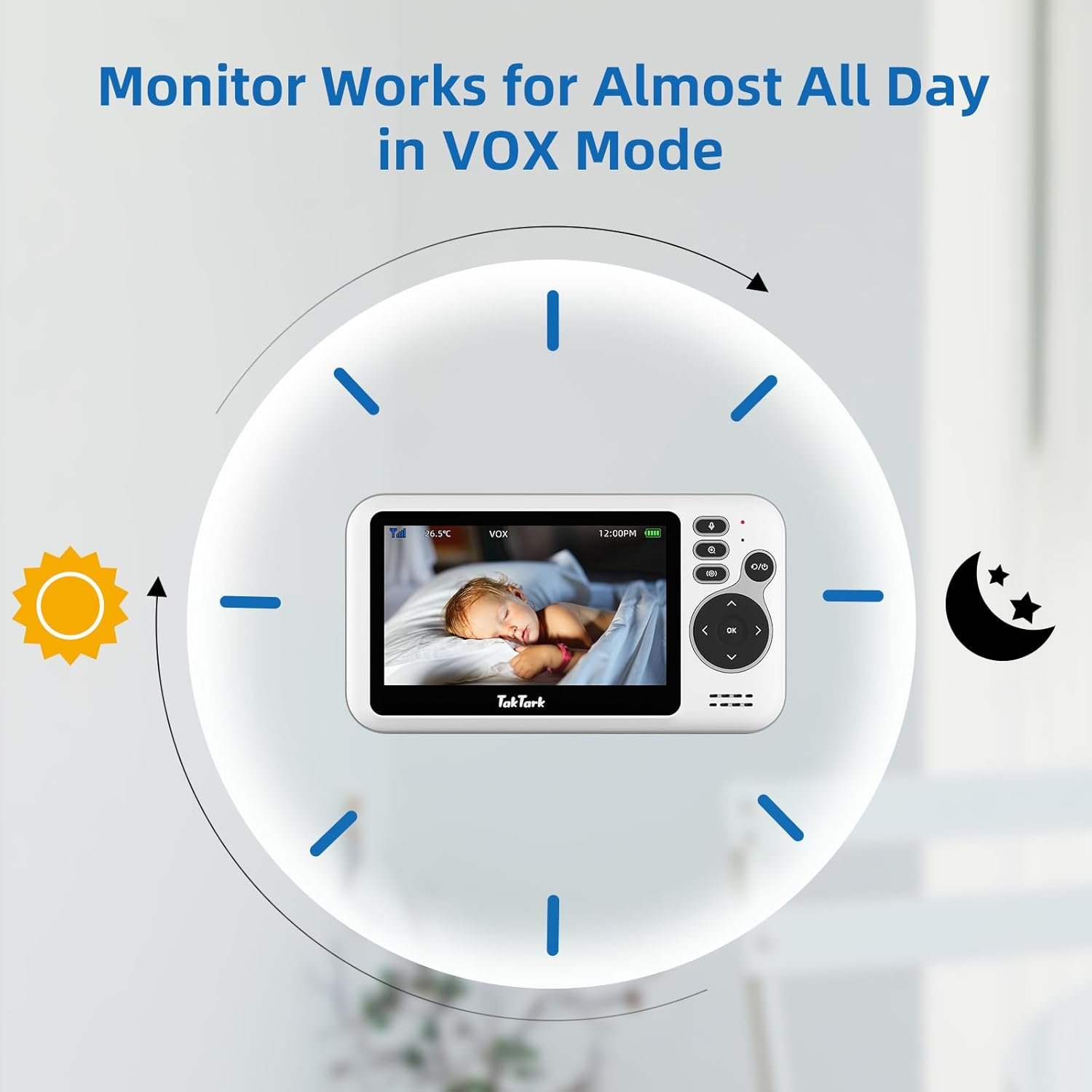 TakTark Babá Eletrônica com Câmera de Bebê 4.3″ Monitor, Sem Wi-Fi, Áudio Bidirecional, Visão Noturna, Zoom Digital 3X, Modo VOX, Monitoramento de Temperatura, Ideal para Pais Novos