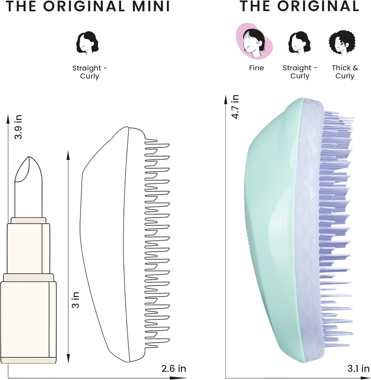 Tangle Teezer – Escova de cabelo desemabaraçadora The Original Fine & Fragile para texturas finas e frágeis, Cor: Verde e Rosa