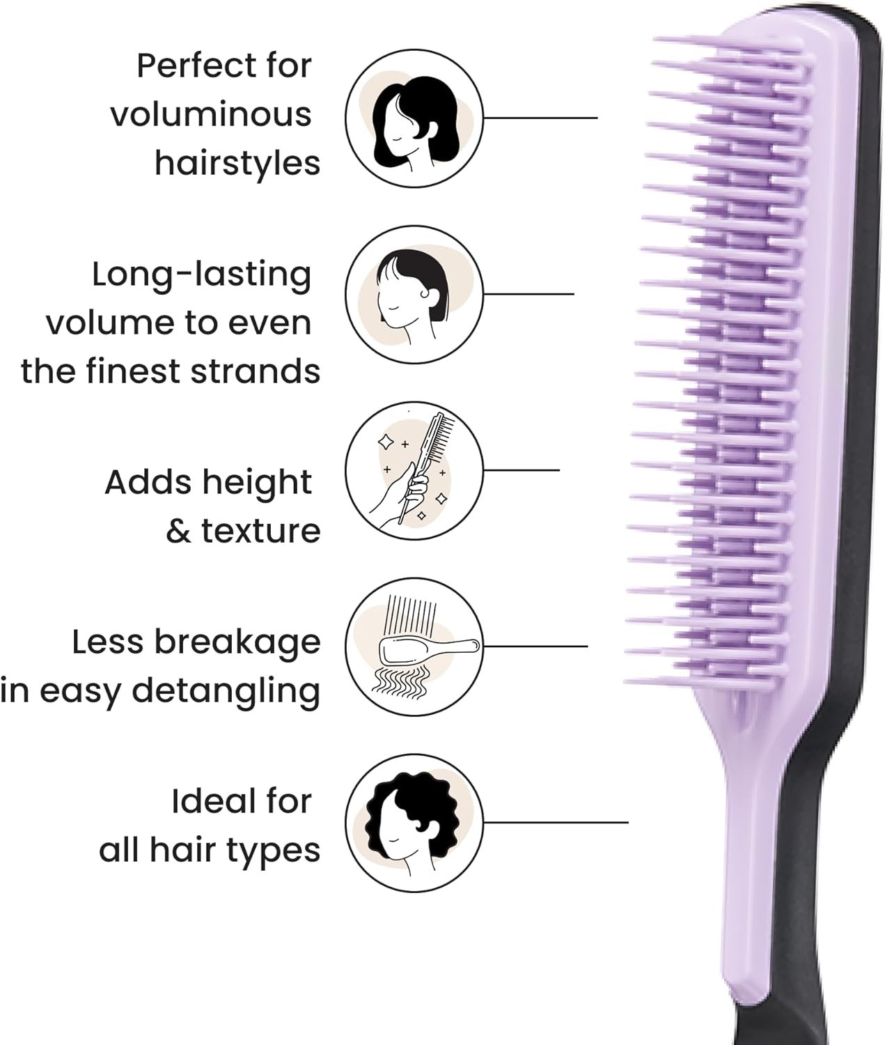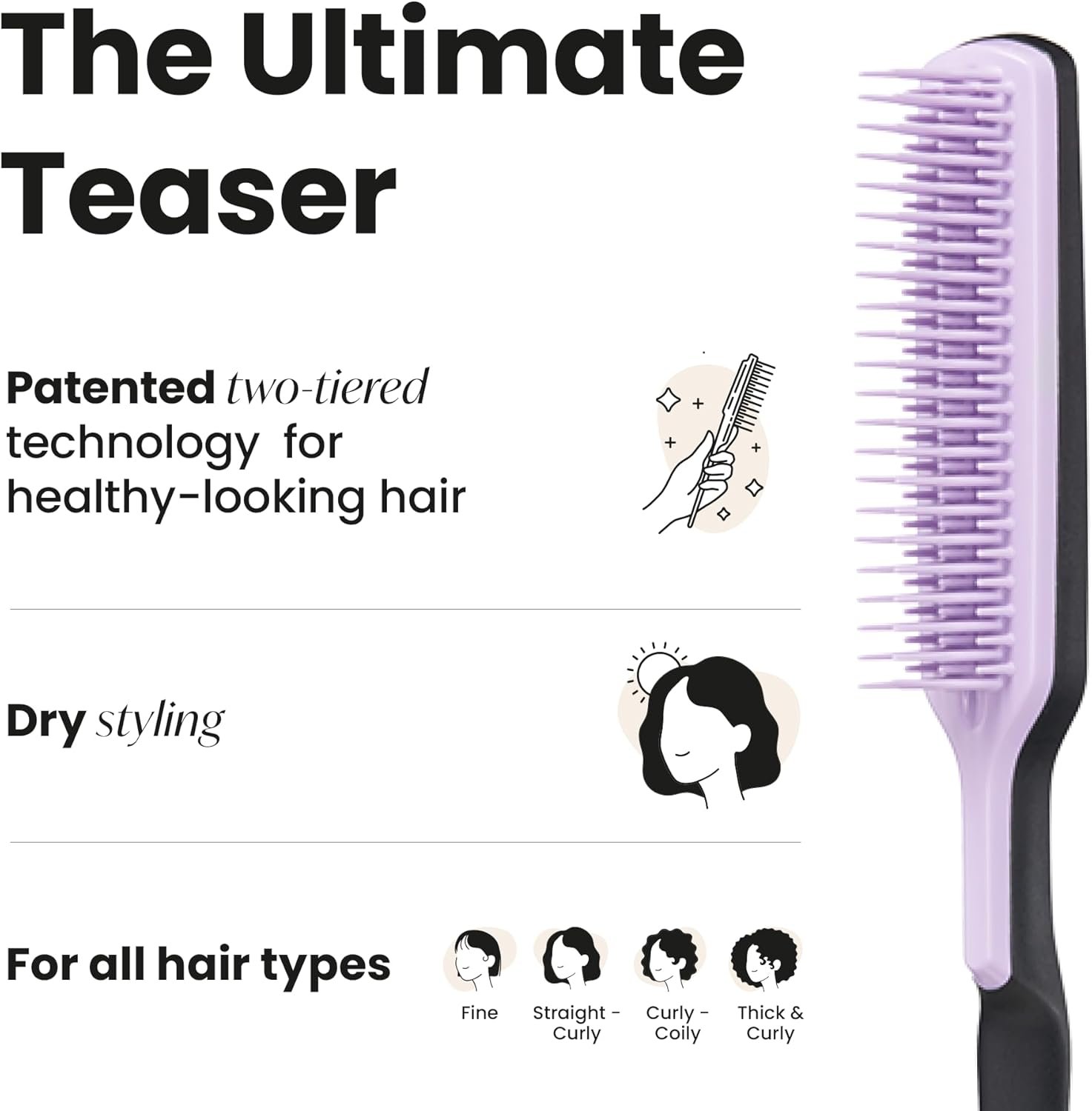 Tangle Teezer – Escova de cabelo para finalização Back Combing Hairbrush. Cor: Lilás