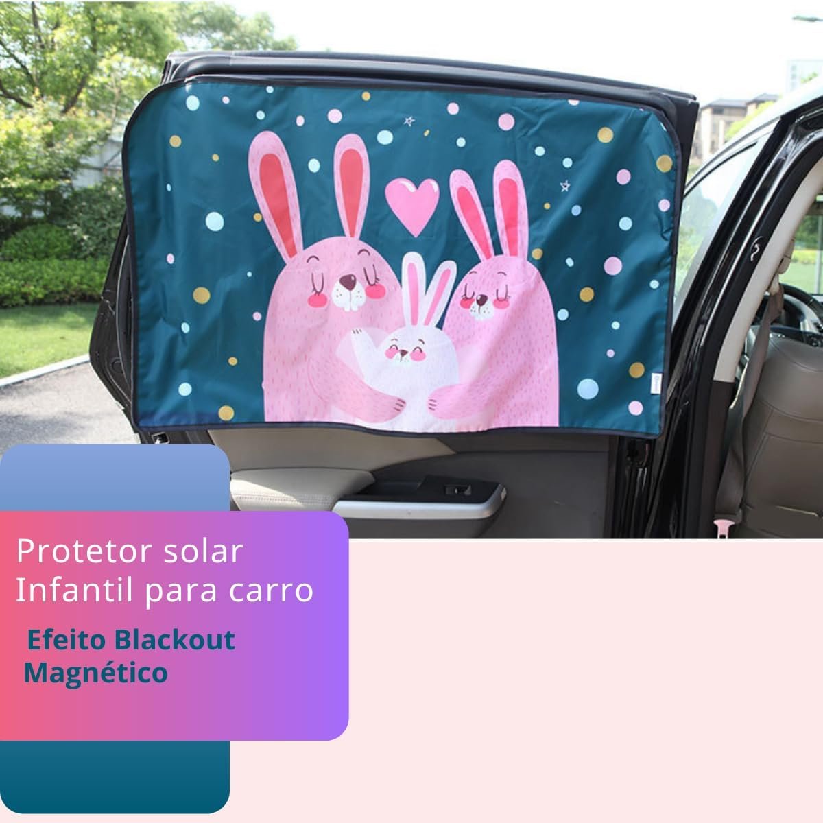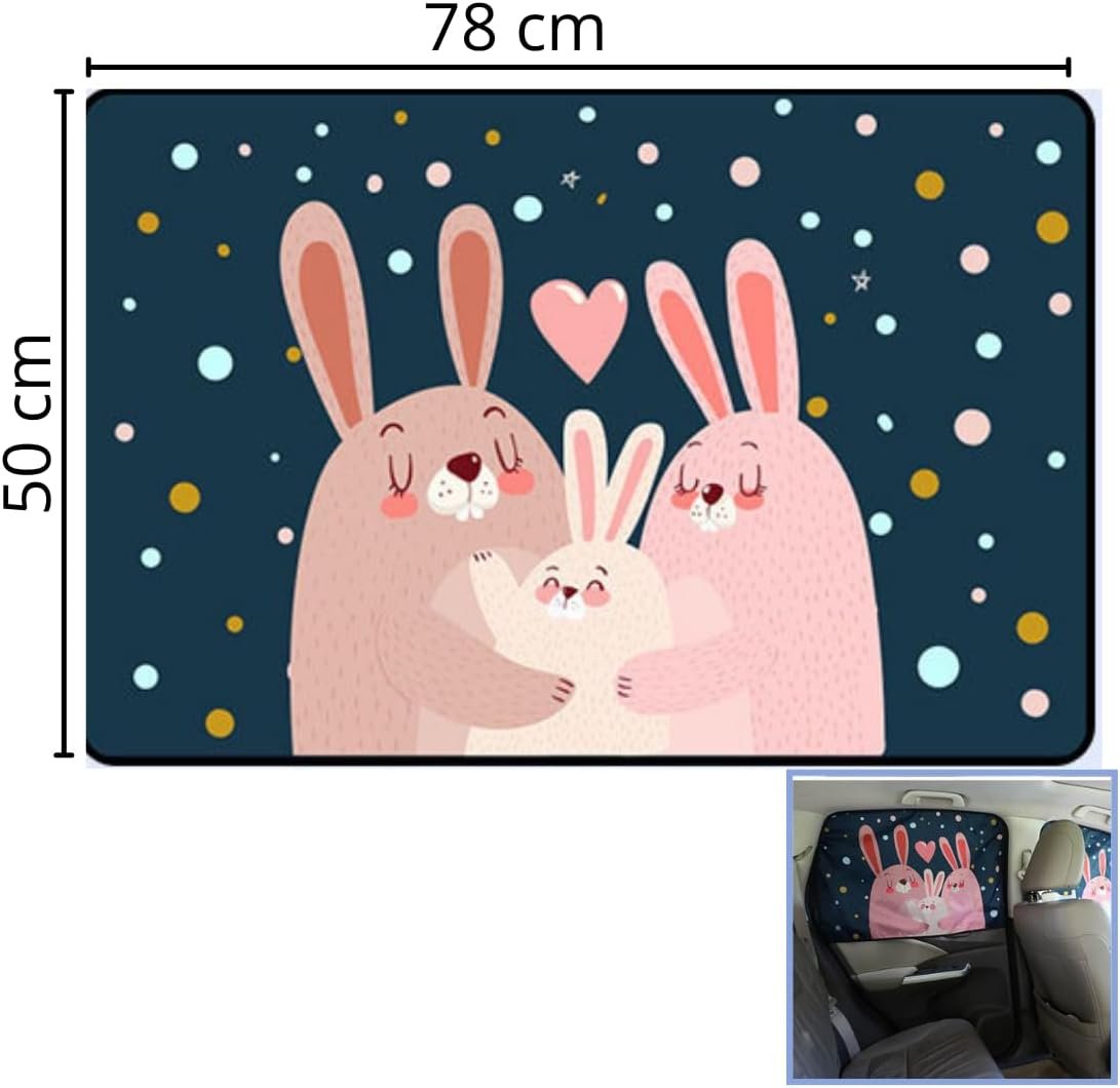 Tapa sol para janela de carro, blackout com proteção UVA-UVB (Coelhinhos)