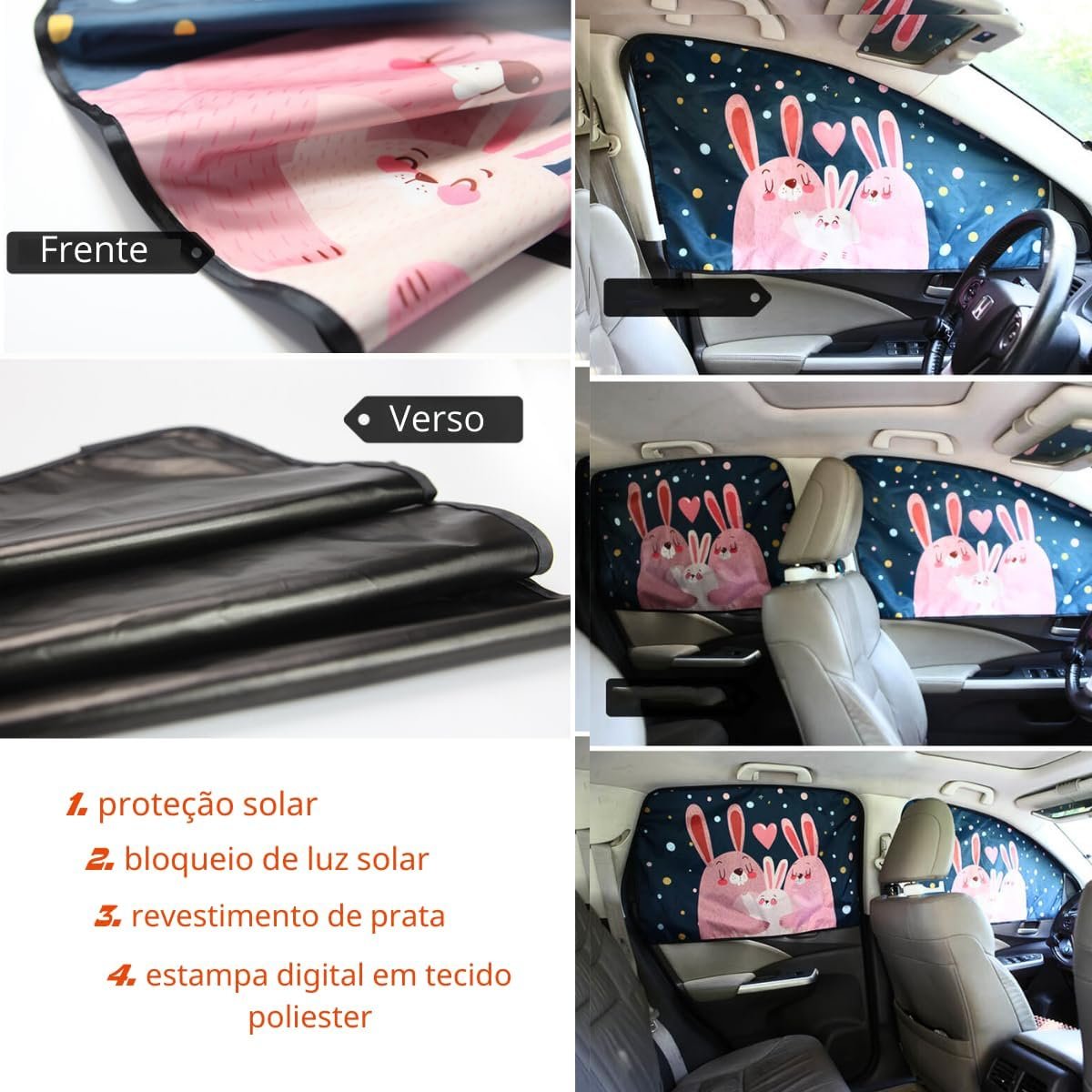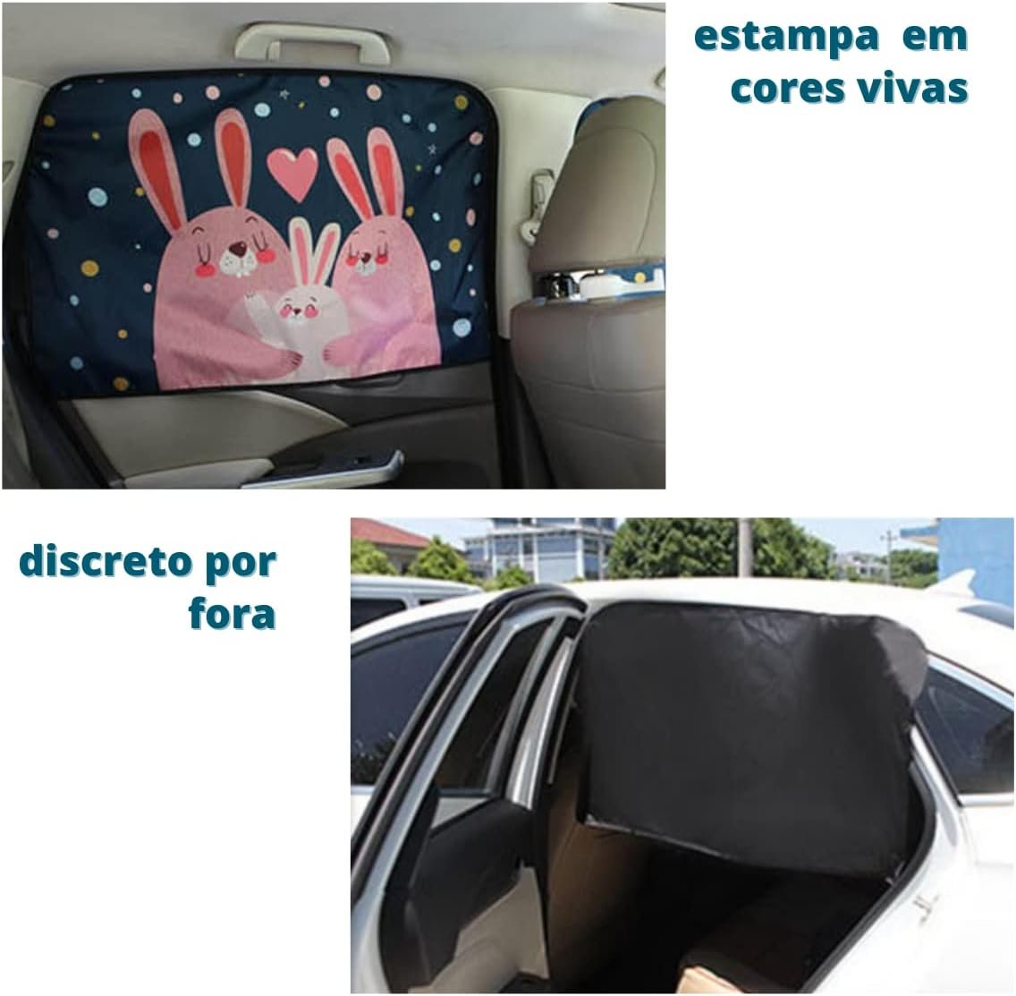 Tapa sol para janela de carro, blackout com proteção UVA-UVB (Coelhinhos)Tapa sol para janela de carro, blackout com proteção UVA-UVB (Coelhinhos)