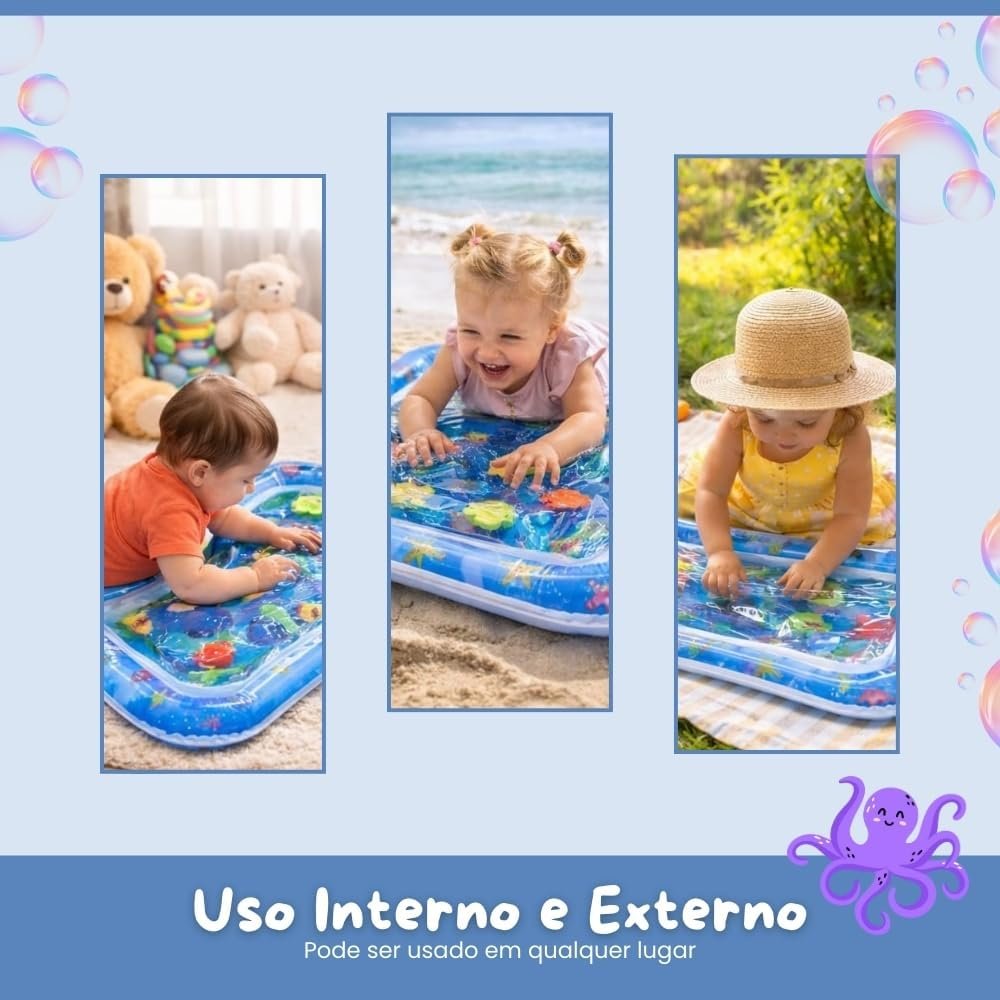 Descrição: Proporcione uma experiência sensorial única e divertida para o seu bebê com o Tapete de Água Inflável com Tema Oceano. Este brinquedo de barriga promove o desenvolvimento infantil, estimulando os sentidos e a coordenação motora. Além disso, é seguro e não vaza, garantindo horas de diversão sem preocupações. Disponível na cor Azul.