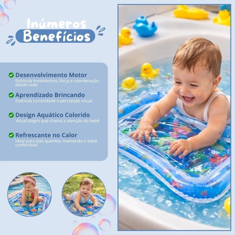Deixe seu bebê se divertir com segurança e desenvolver habilidades com o Tapete de Água Inflável para Bebês! Com um encantador tema oceano em rosa, este brinquedo de barriga proporciona uma atividade sensorial única. Além disso, você pode ficar tranquilo, pois ele não vaza. Presenteie seu pequeno com diversão e aprendizado!