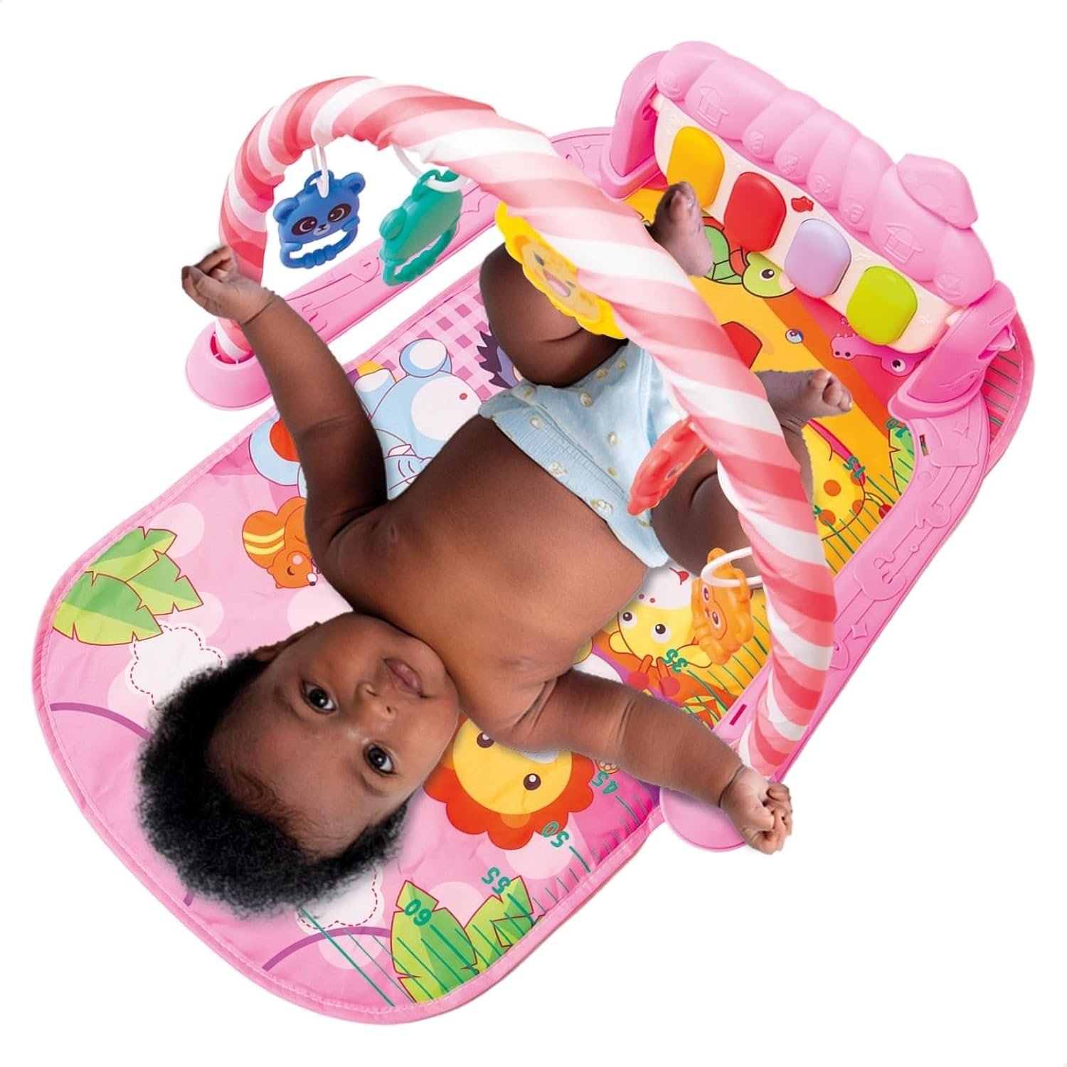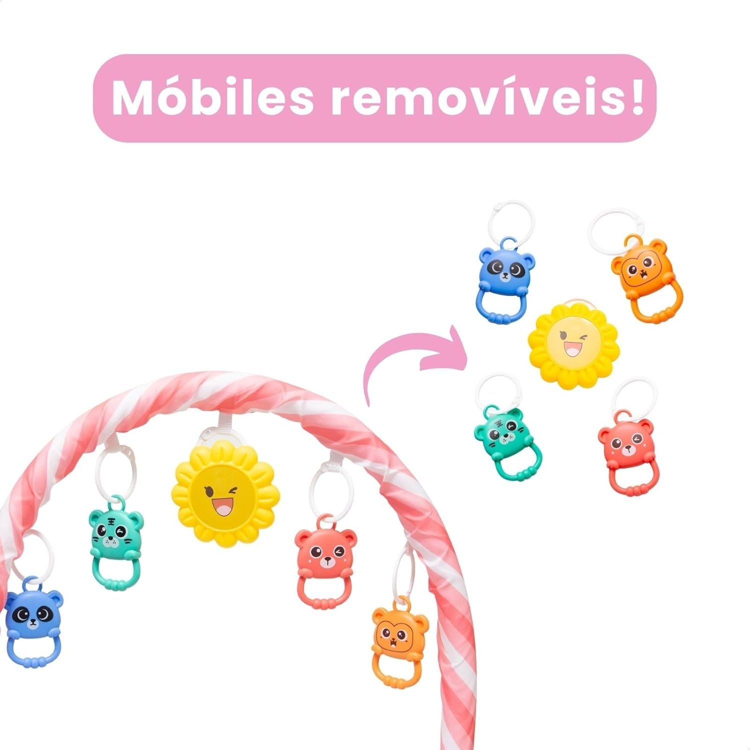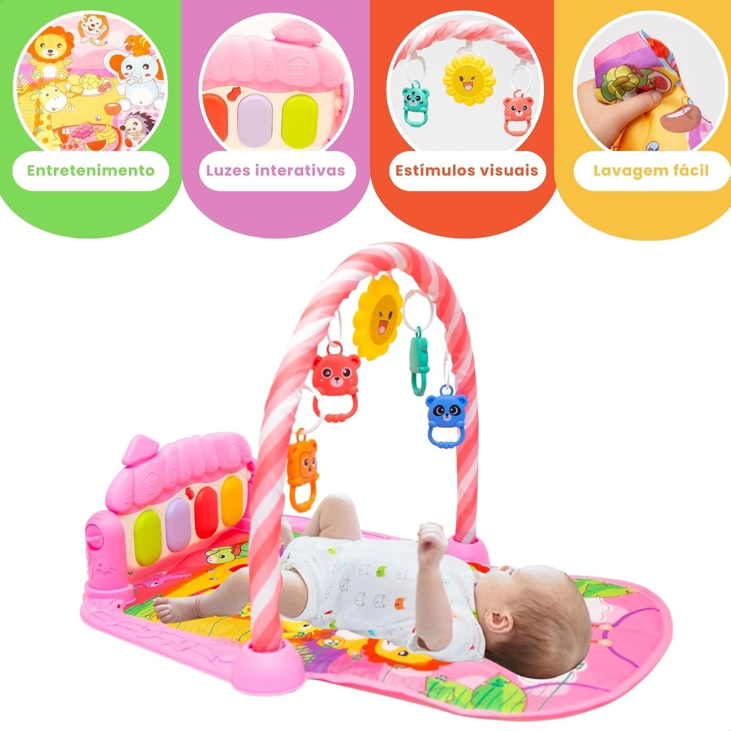 Tapete de Atividades Musical com Piano para Bebê, Arco de Brinquedos Interativos, Estampado e Cores Vibrantes (Rosa)