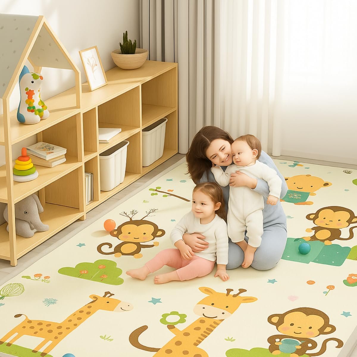 Este tapete antiderrapante é perfeito para as atividades educativas do seu bebê. Macio, impermeável e colorido, oferece um ambiente seguro e divertido para a criança brincar. Reversível, leve e compacto, acompanha uma bolsa para facilitar o transporte. Disponível nas estampas Safari e Cidade.