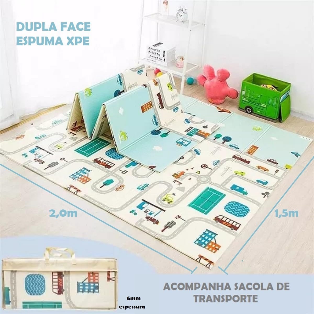 Tapete Térmico Emborrachado Dupla Face Infantil para Atividades Cidade 1,50 x 2,00M – IM43013