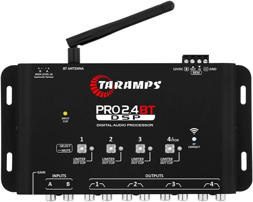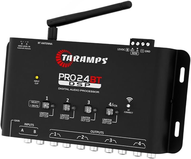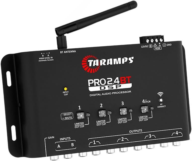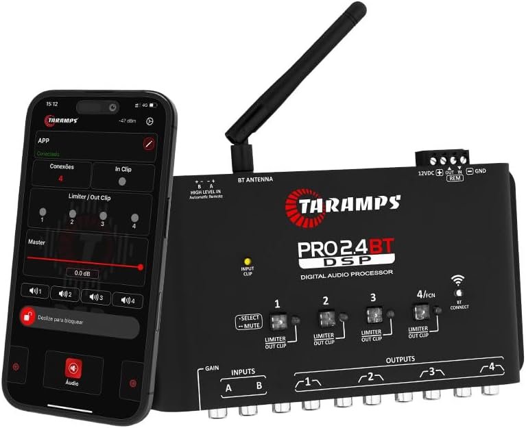 Taramps Processador de Audio Digital Pro 2.4 BT Bluetooth Som Automotivo Controle Por Aplicativo Celular Tablet Entrada Fio e RCA 4 Saidas Crossover Equalizador Grafico e Parametrico LimiterTaramps Processador de Audio Digital Pro 2.4 BT Bluetooth Som Automotivo Controle Por Aplicativo Celular Tablet Entrada Fio e RCA 4 Saidas Crossover Equalizador Grafico e Parametrico Limiter