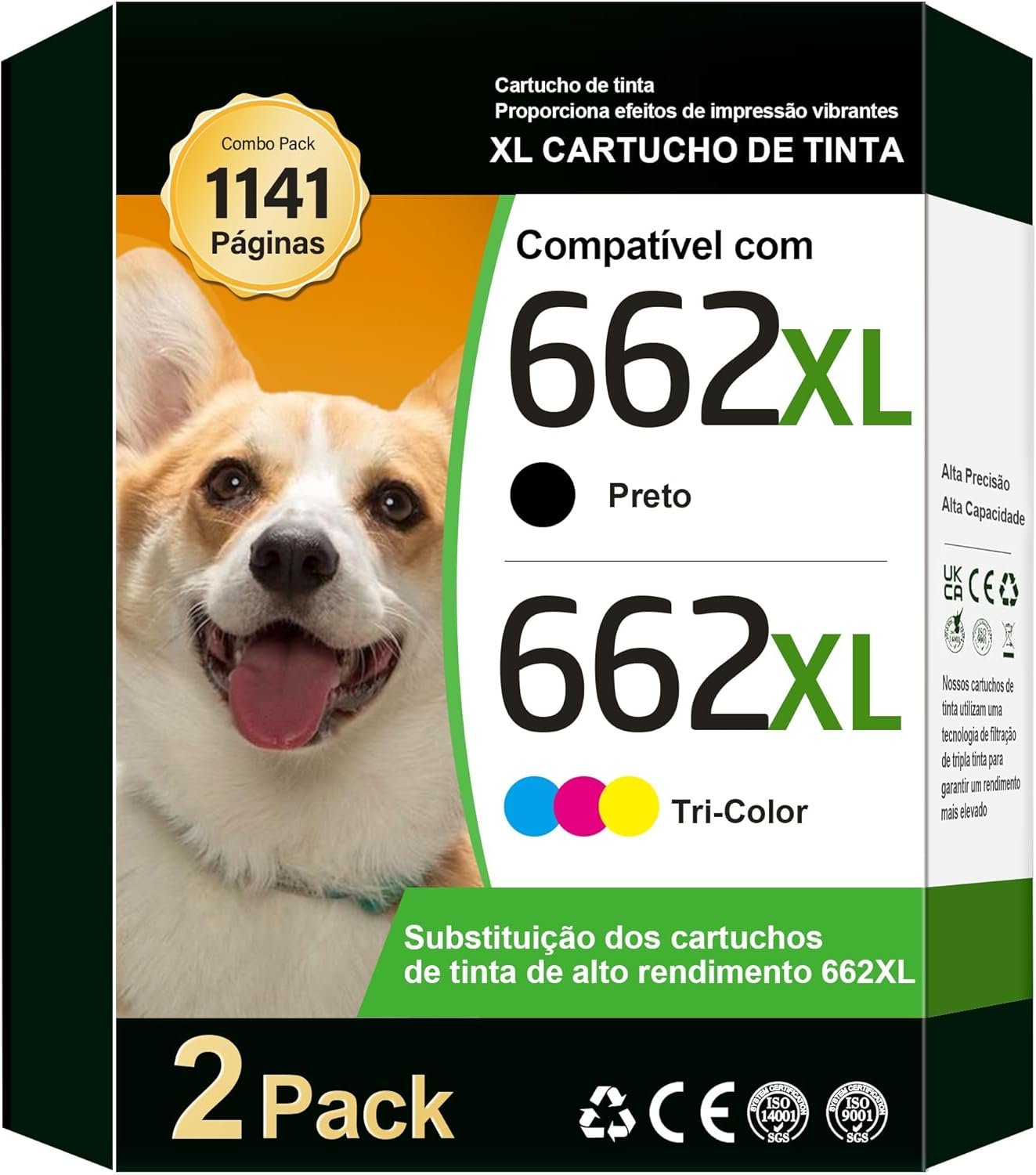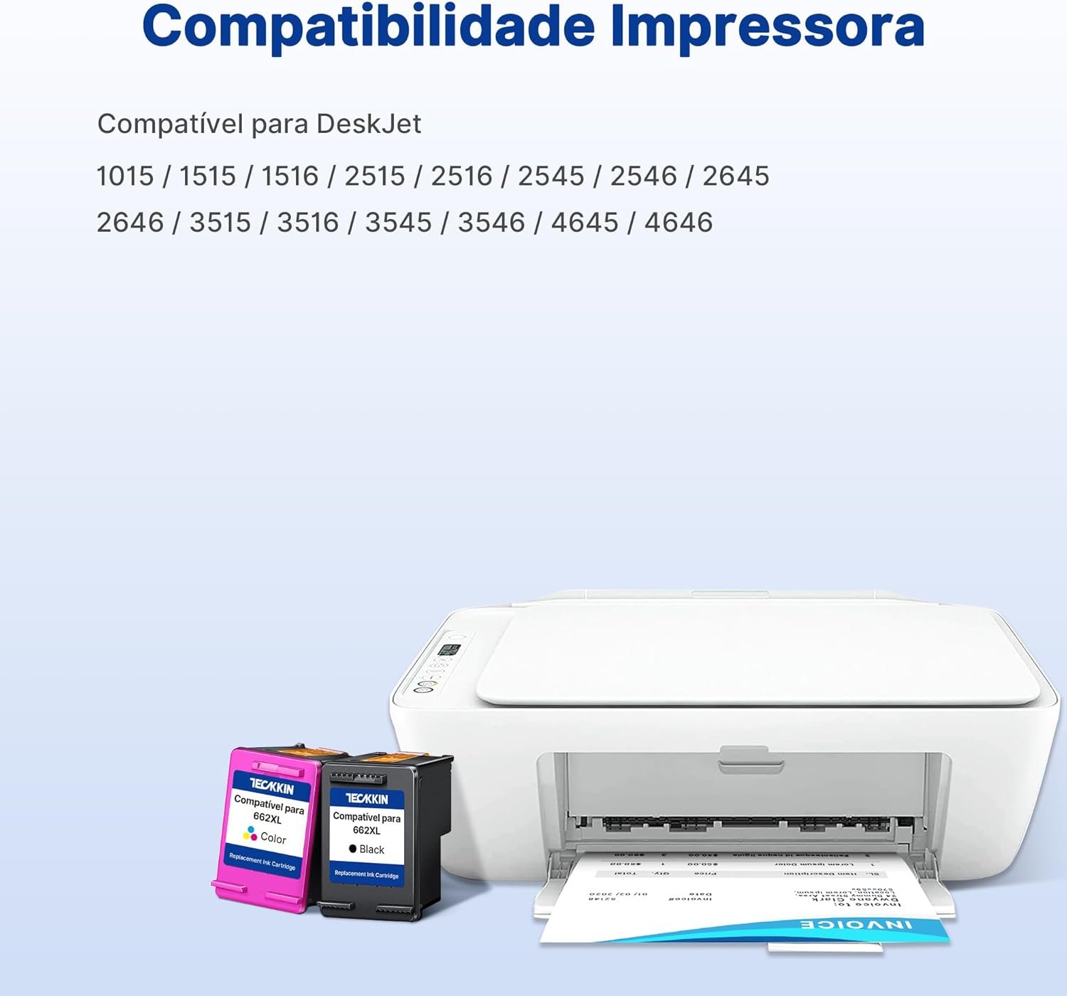 TECKKIN Cartucho de Tinta Compatível para HP 662 662XL Compatível para HP Deskjet 1015 1515 2515 2516 2545 2546 2645 3515 4645 impressora (1 Preto, 1 Colorido)