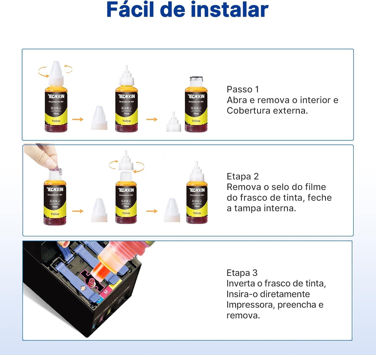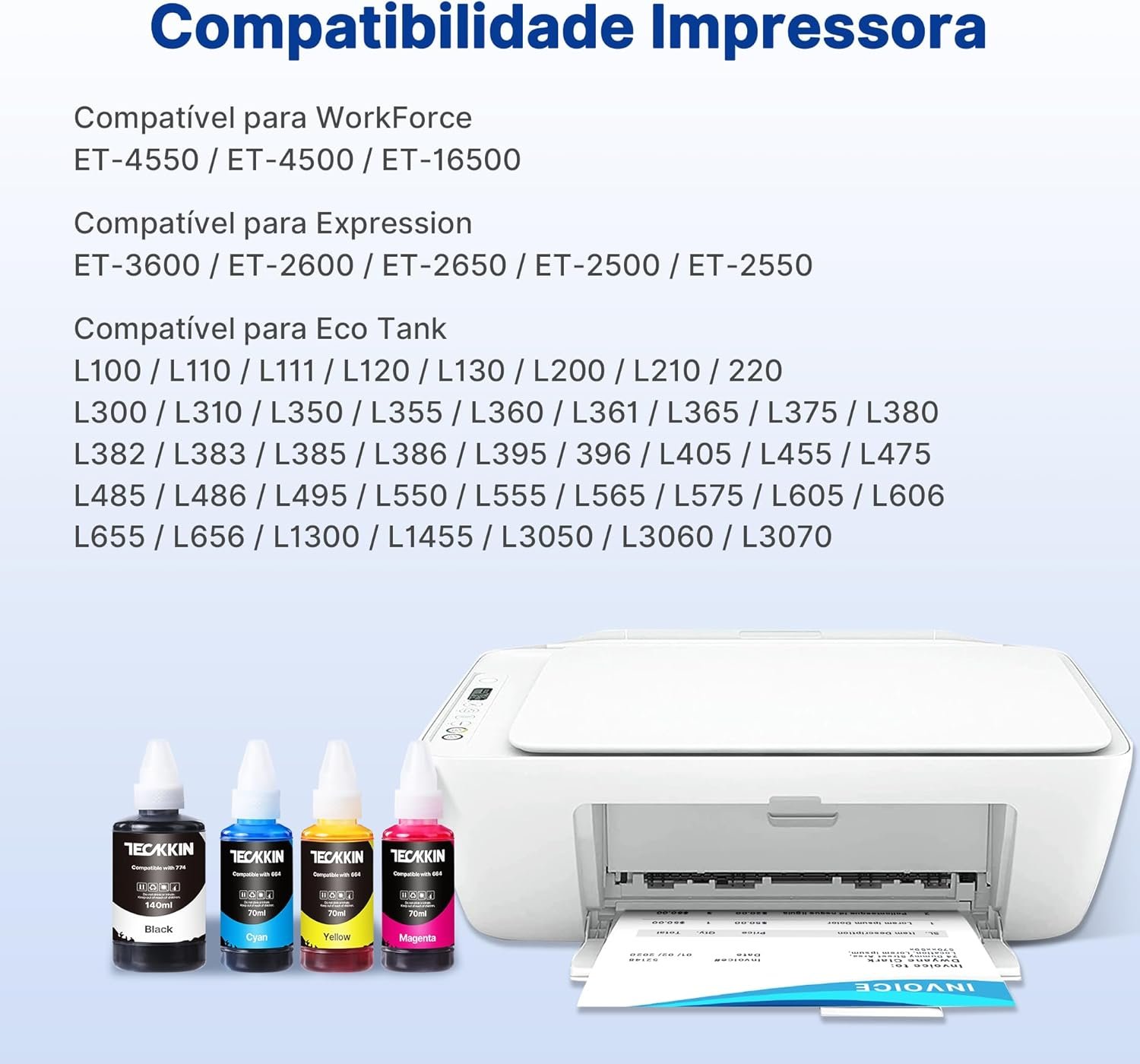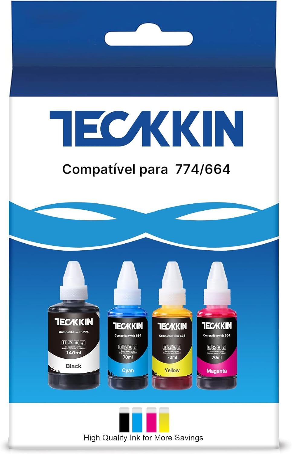 TECKKIN Kit 4 Refil Tintas compatível para Epson 774 664 T774 T664 Compatível para Epson Impresoras L120 L310 L380 L395 L495 L575 L606 L655 L656 L1300 L1455 L121 L210 M100 M105