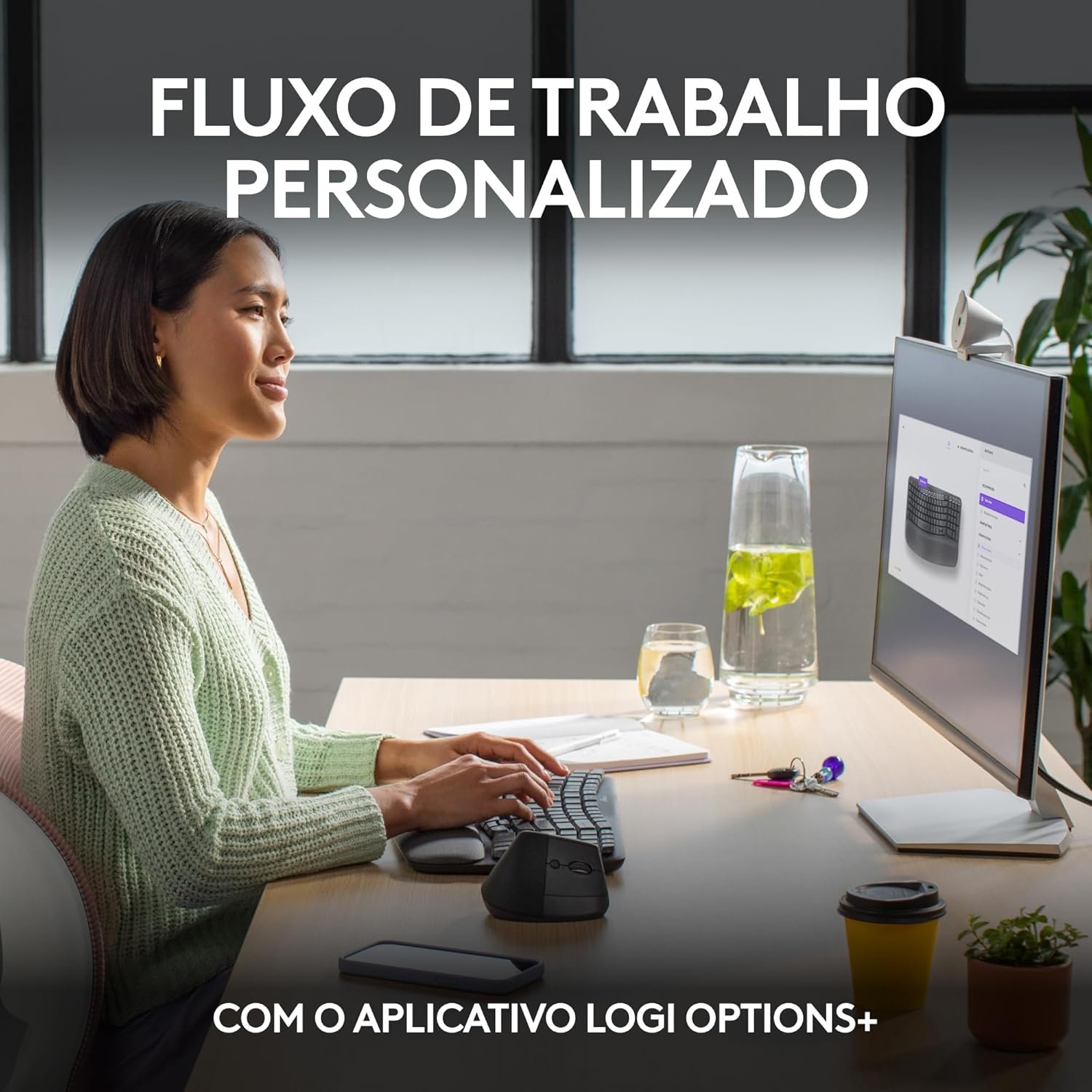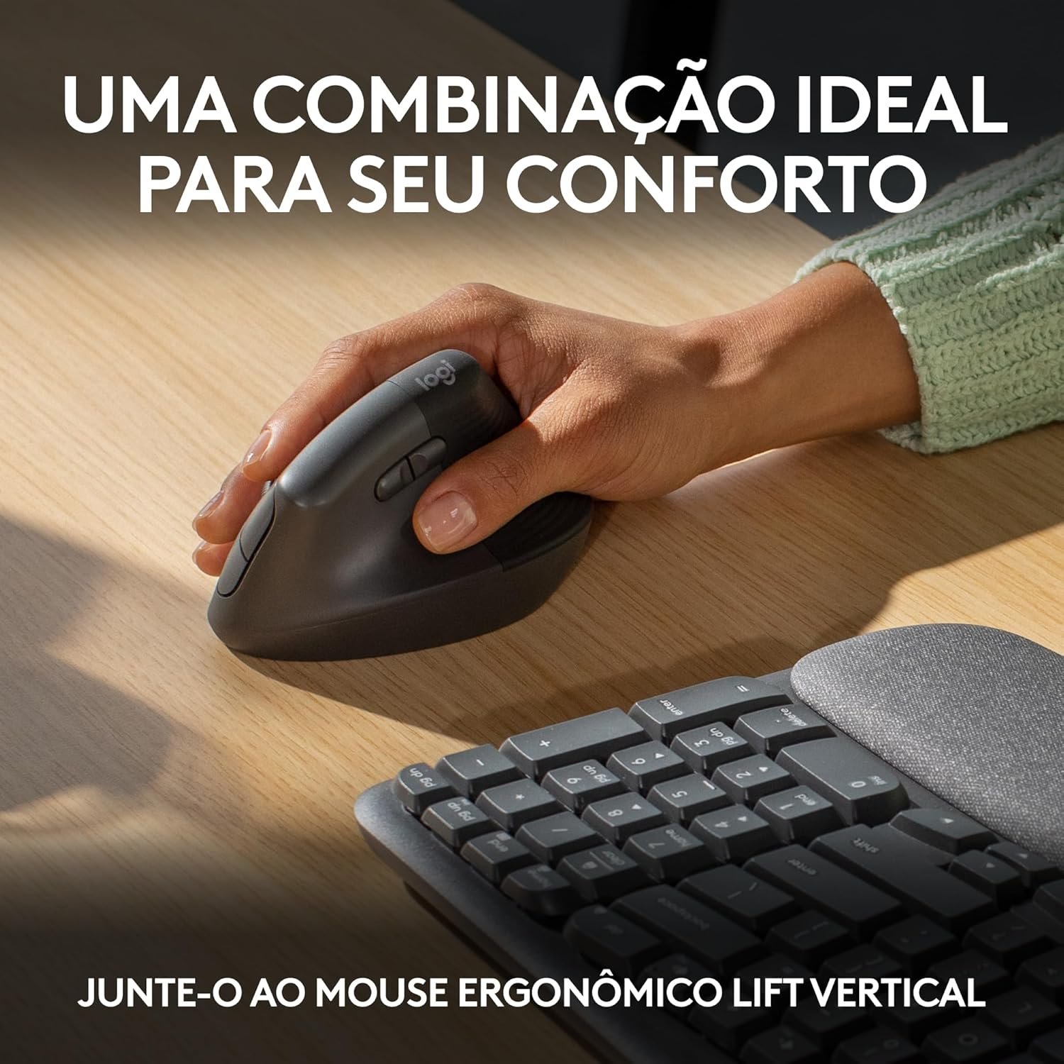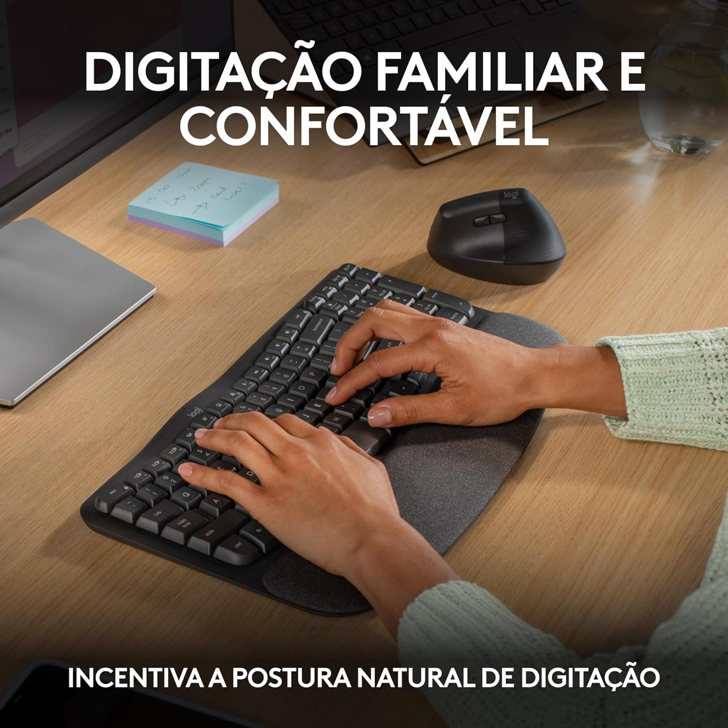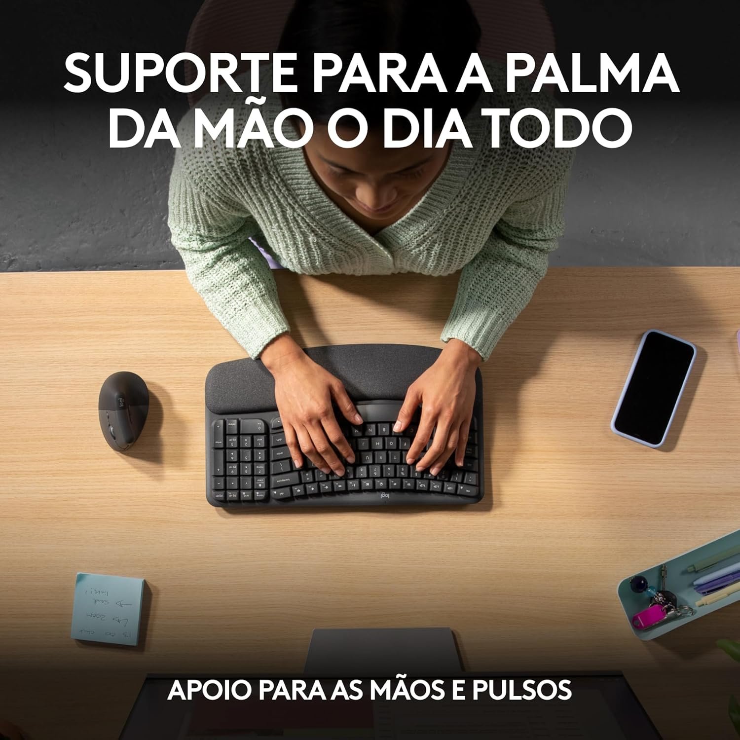Teclado Ergonômico sem fio Logitech Wave Keys com Design Ondulado, Suporte para Descanso de Pulso Acolchoado, Bluetooth ou Receptor USB Logi Bolt, Compatível com Windows/Mac e Layout US – Grafite