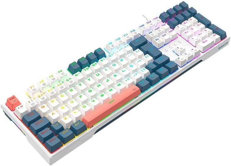 TECLADO MECANICO GAMER REDRAGON TRUNDLE RGB BRANCO, AZUL E ROSA SWITCH MARROM