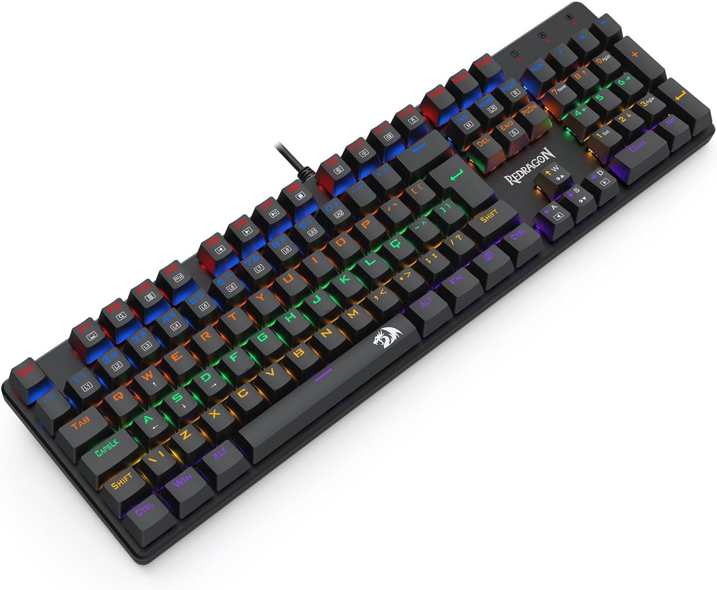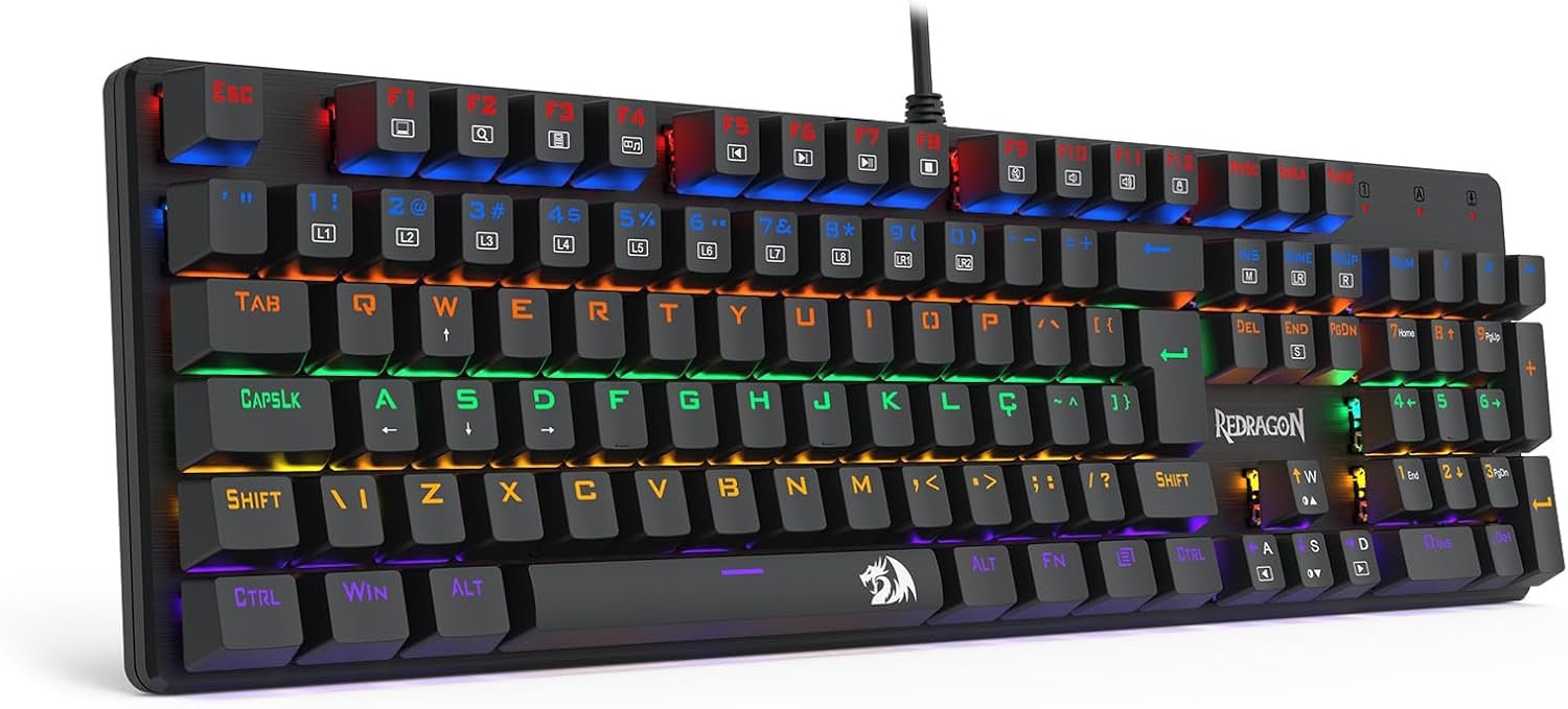 TECLADO MECÂNICO GAMER REDRAGON VALHEIM ILUMINAÇÃO RAINBOW PRETO SWITCH BROWN K608-R (PT-BROWN)