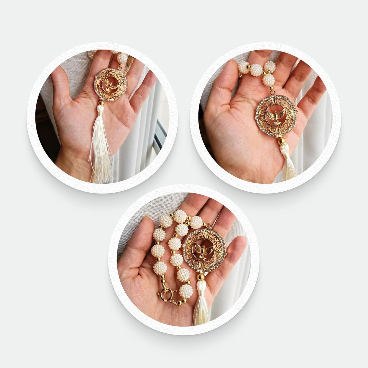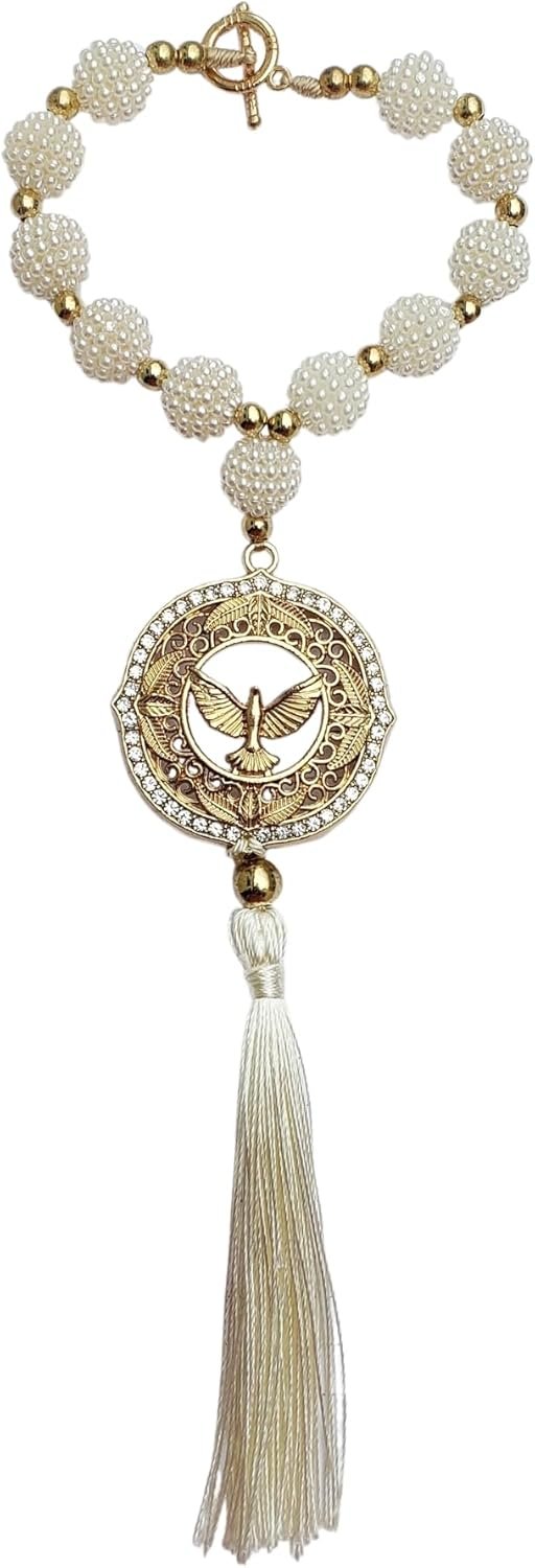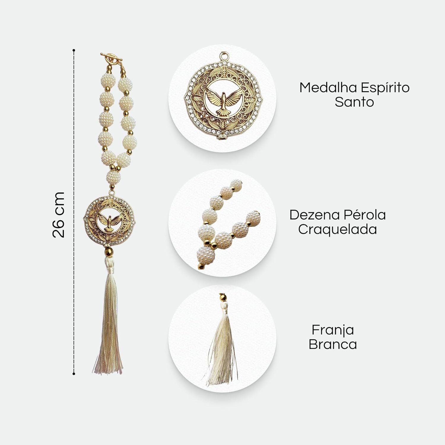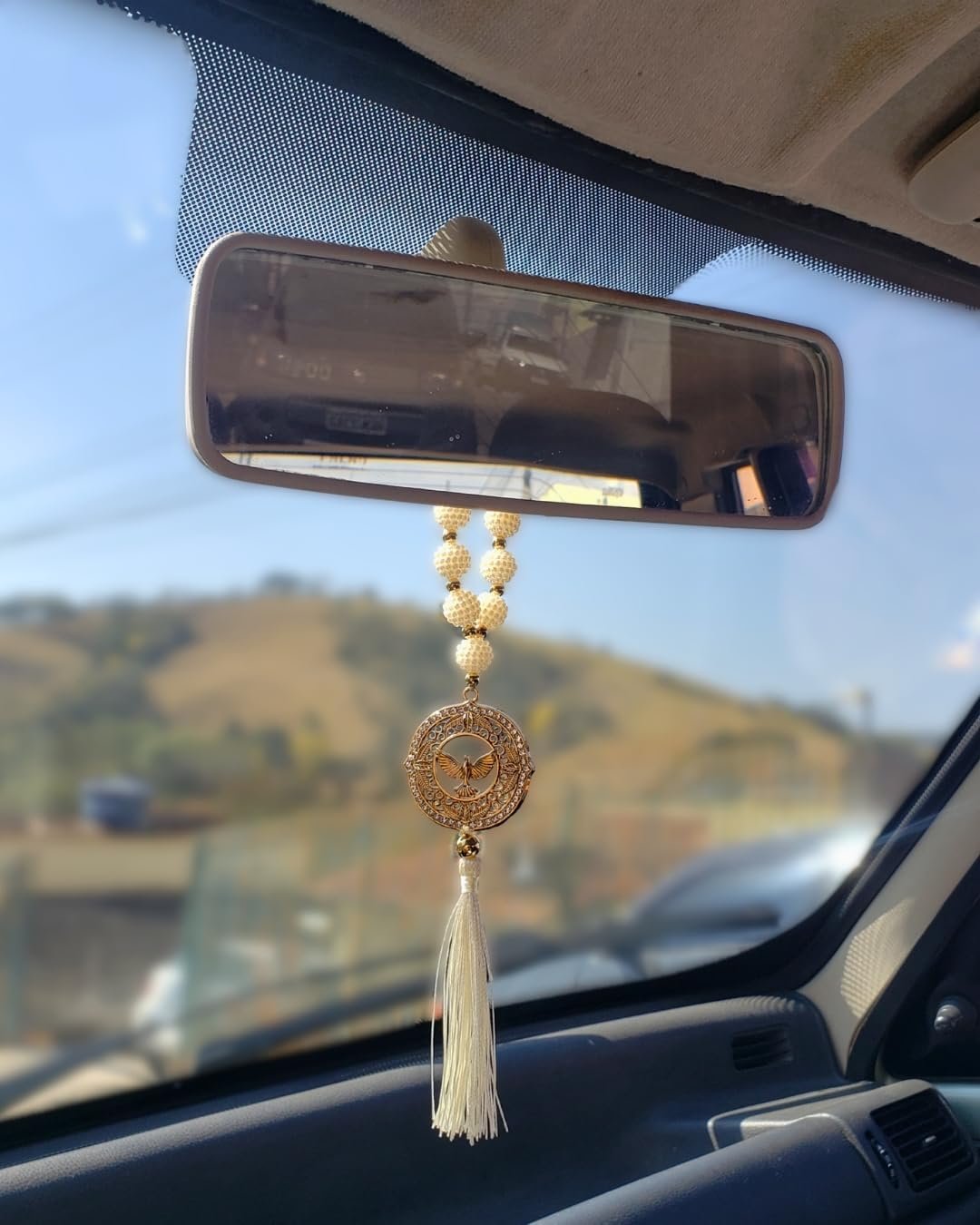 Terço Dezena Retrovisor Carro Divino Espírito Santo Acessórios Bolsa Mochila Oratório (1, 1 Divino – Amora Pérola – Strass Branco)