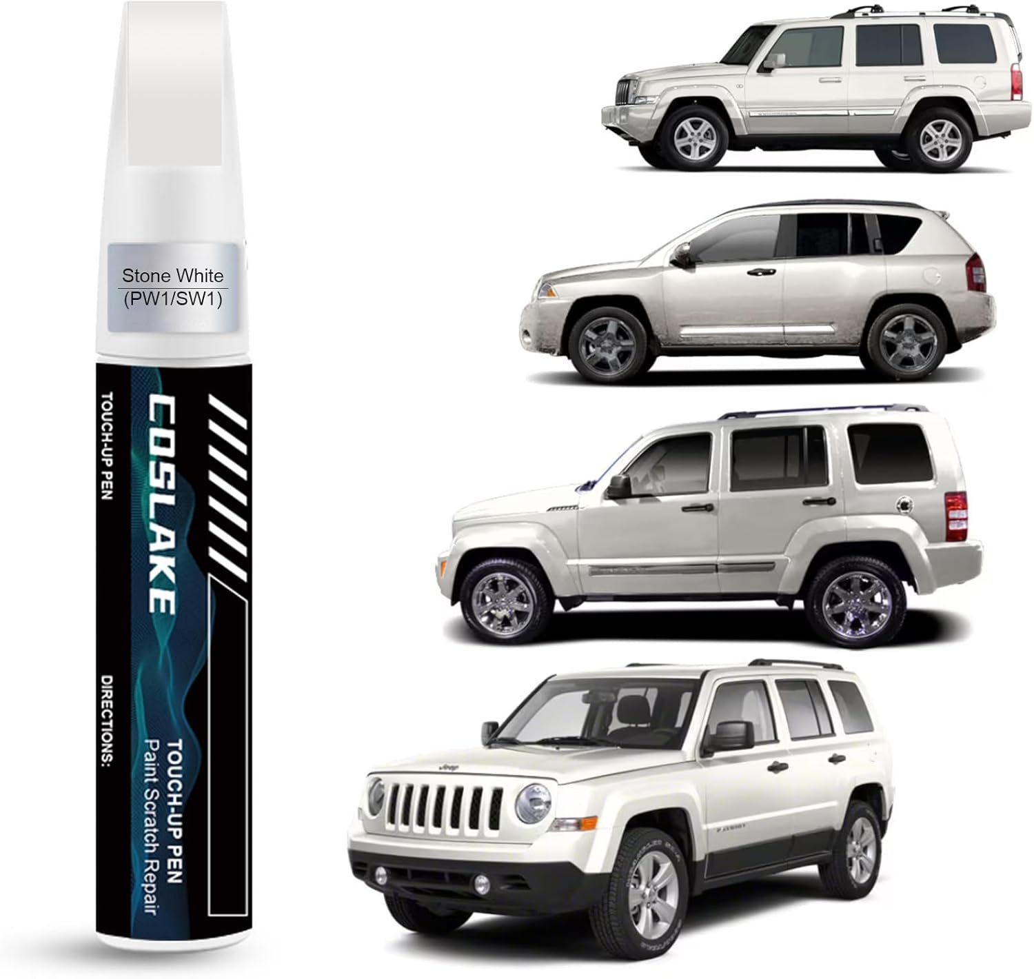 Tinta de retoque de carro (pedra branca (PW1/SW1)) para Jeep, kit de reparo de arranhões de pintura de carro, solução rápida e fácil de reparar, caneta removedor de arranhões 2 em 1 com cor