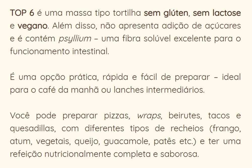 Top 6 Natural Life – Massa Tipo Tortilha Sem Glúten – Vegano – 170g
