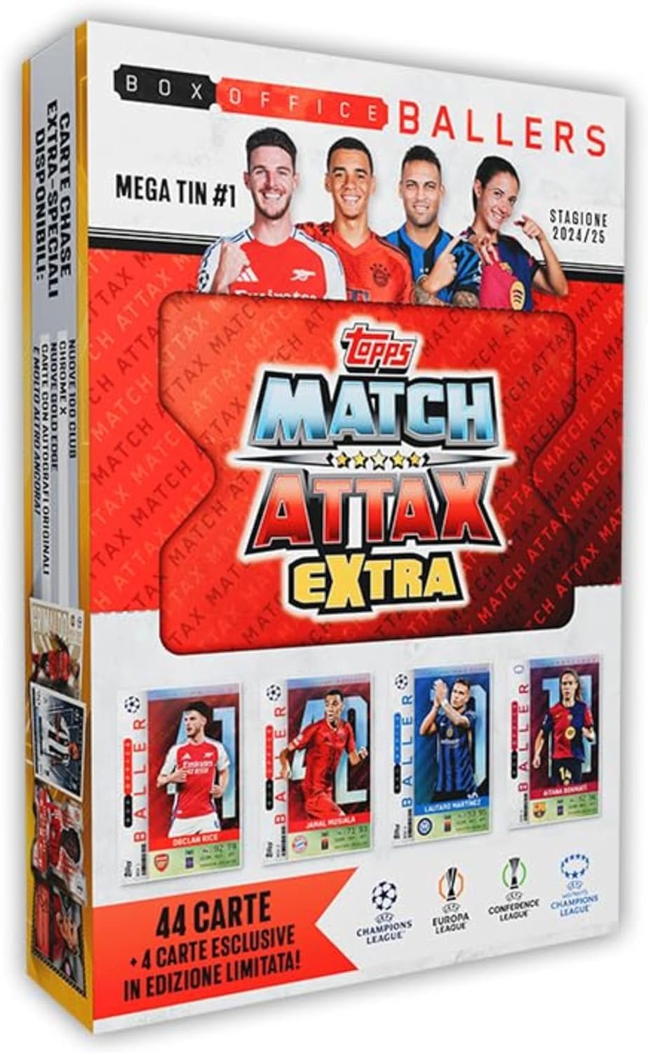 Topps – TCG Cards Game UEFA Club Competitions 2025 Match Attax Extra – Mega Lata Box Office Ballers com 48 Cards