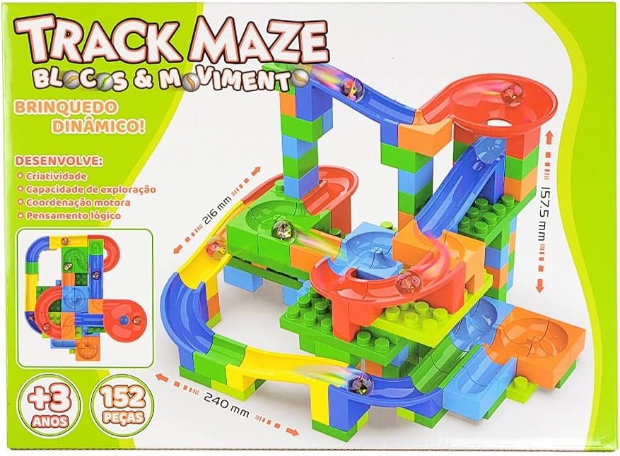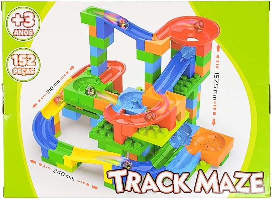 TRACK MAZE 152 PEÇAS – PISTA DE MONTAR E ROLAR A BOLINHA – BRINQUEDO EDUCATIVO PEDAGOGICO – BLOCO DE MONTAR INFANTIL
