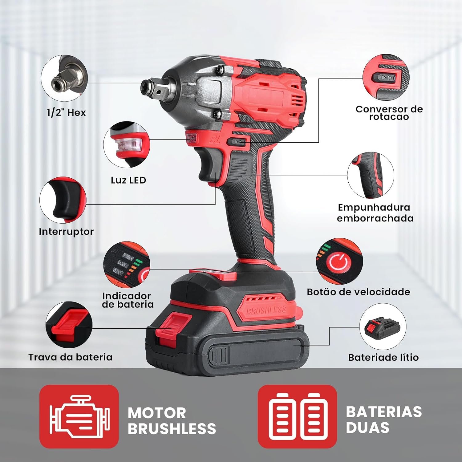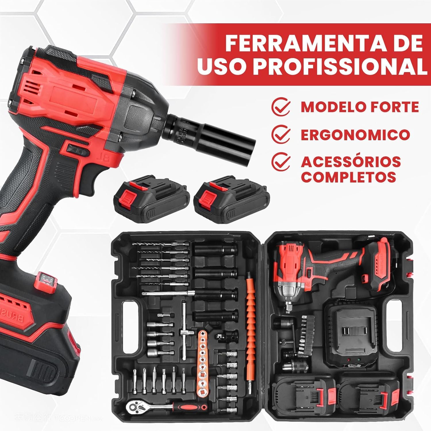 Trailabo Chave de Impacto Elétrica 48V com 2 Bateria, 55 Peças, Alta Velocidade Até 3000 RPM, Furadeira de Impacto Multiuso de 600N com Cabo de Borracha e Carregador, Parafusadeira e FuradeiraTrailabo Chave de Impacto Elétrica 48V com 2 Bateria, 55 Peças, Alta Velocidade Até 3000 RPM, Furadeira de Impacto Multiuso de 600N com Cabo de Borracha e Carregador, Parafusadeira e Furadeira