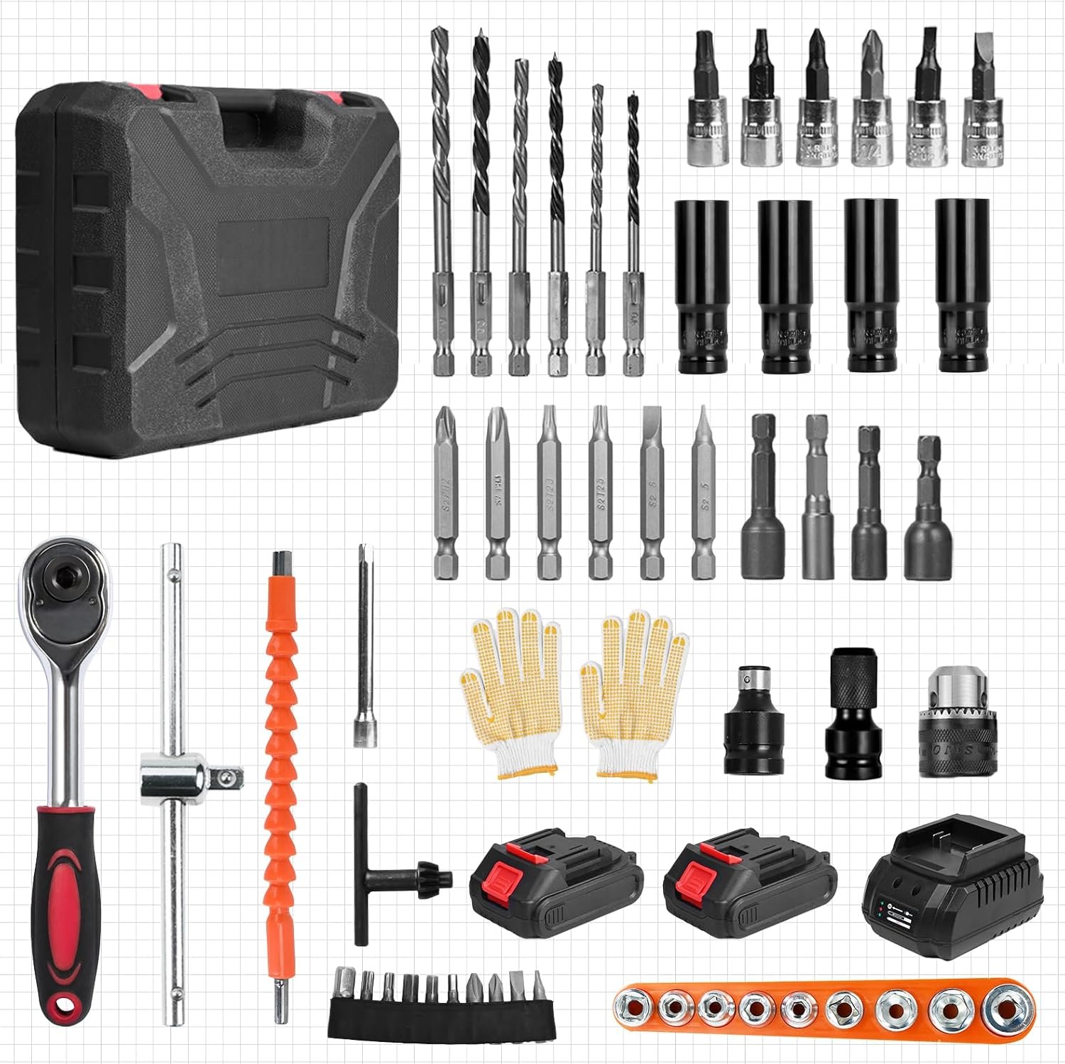 Seja o primeiro a avaliar “Trailabo Chave de Impacto Elétrica 48V com 2 Bateria, 55 Peças, Alta Velocidade Até 3000 RPM, Furadeira de Impacto Multiuso de 600N com Cabo de Borracha e Carregador, Parafusadeira e Furadeira”