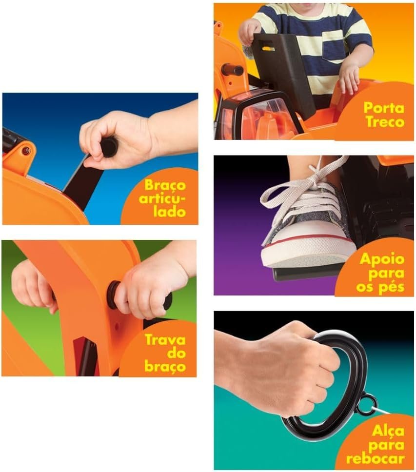 Trator Escavadeira Giant Escavator Até 50Kg, Roma Brinquedos, Multicor