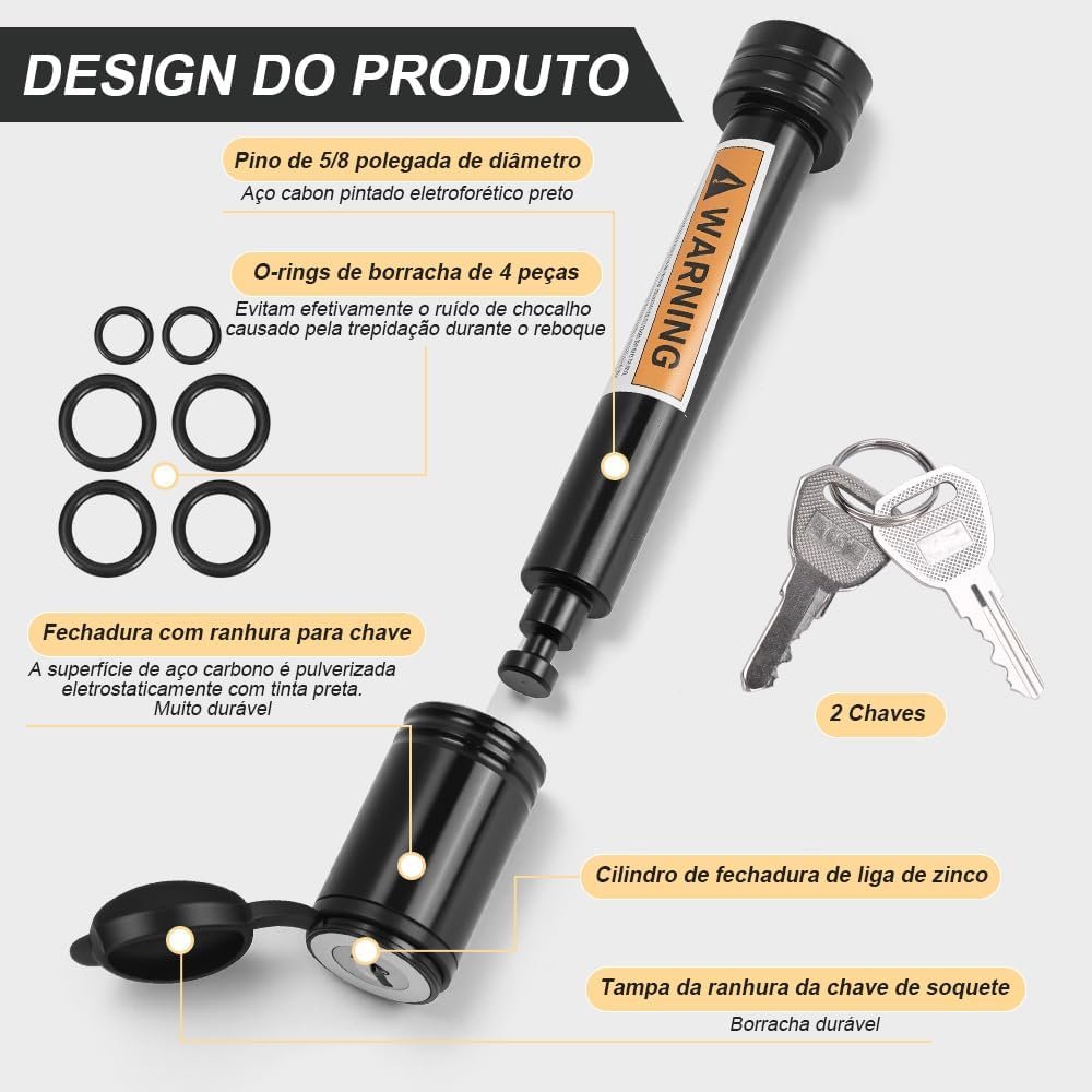 Trava de Engate de Reboque, Trava de Receptor de Reboque, Pino Receptor de Travamento, Trava de Engate de Reboque Antirroubo com Tampa à Prova D’água e 2 Chaves