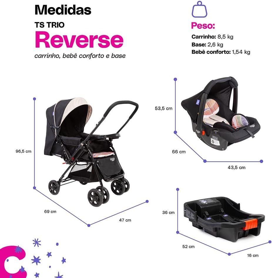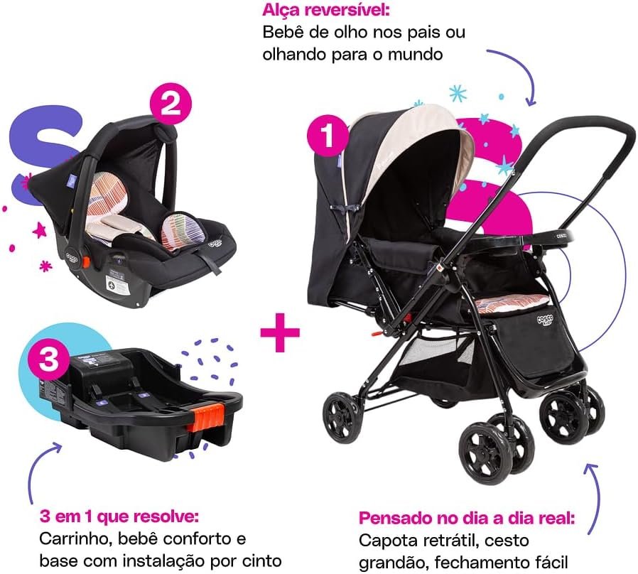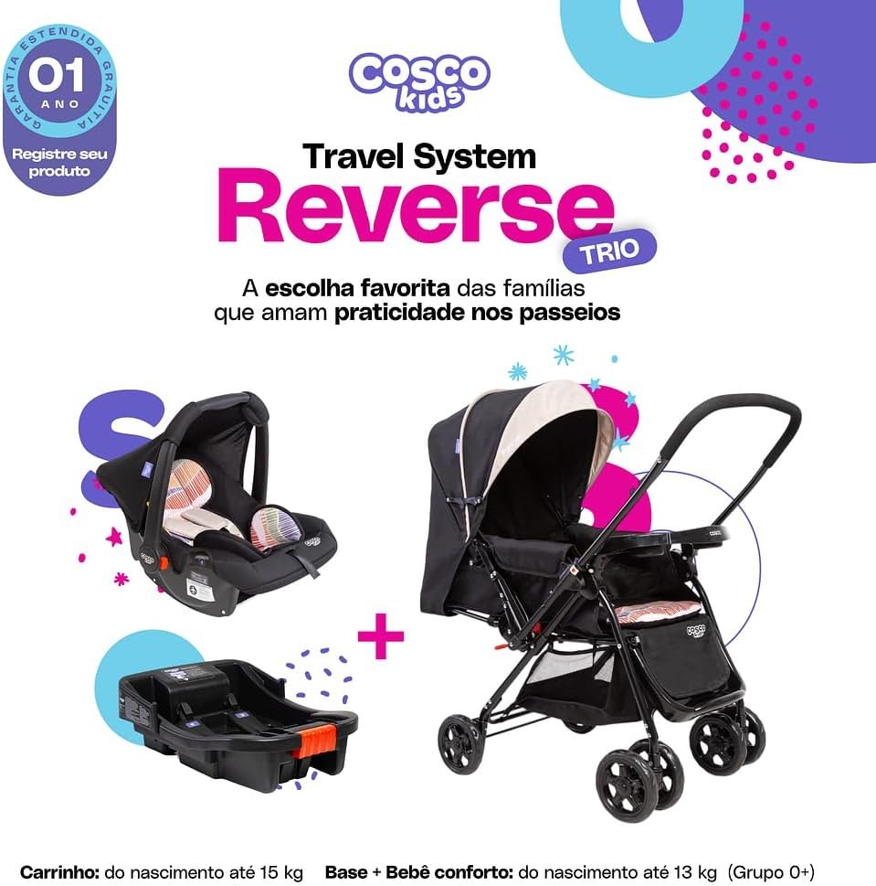 Travel System Cosco Kids, Reverse Trio, Bege Onda